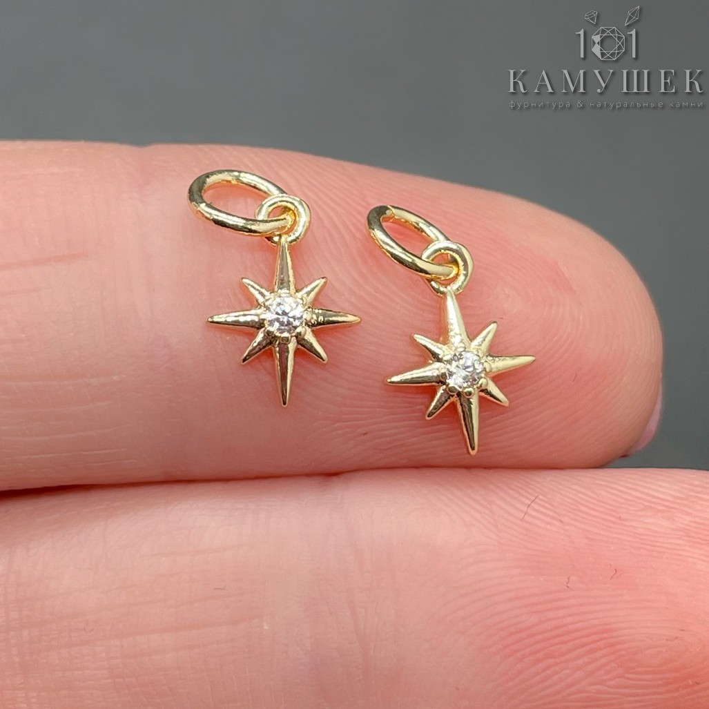 Подвеска Северная звезда циркон, цвет золото 10х7 мм