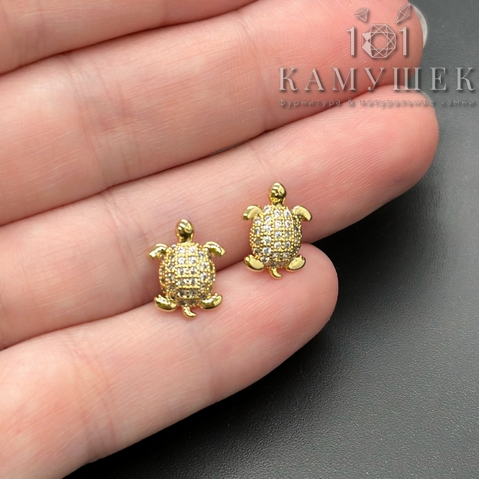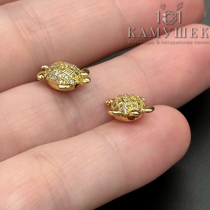 Бусина черепаха цирконы, цвет золото 11х9 мм