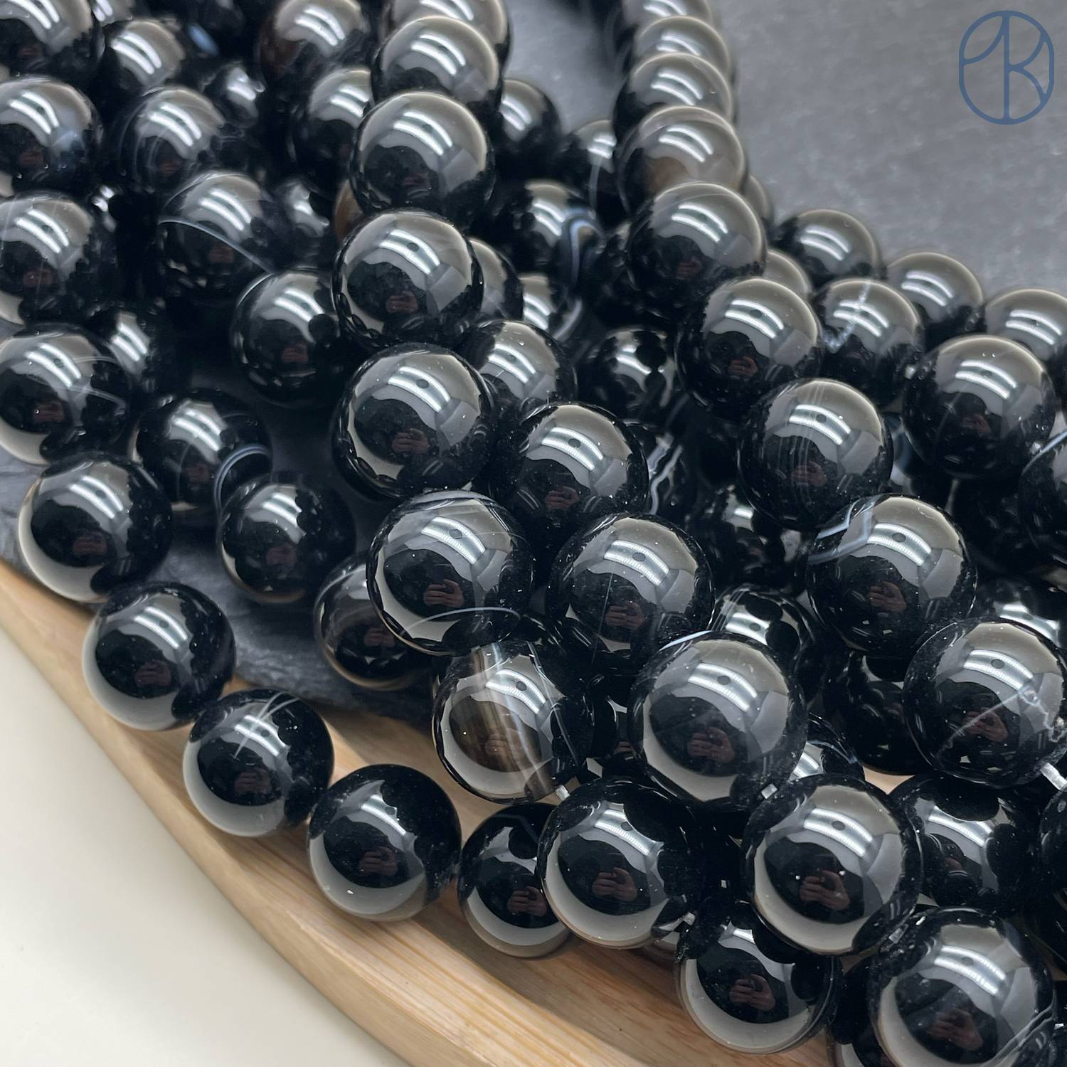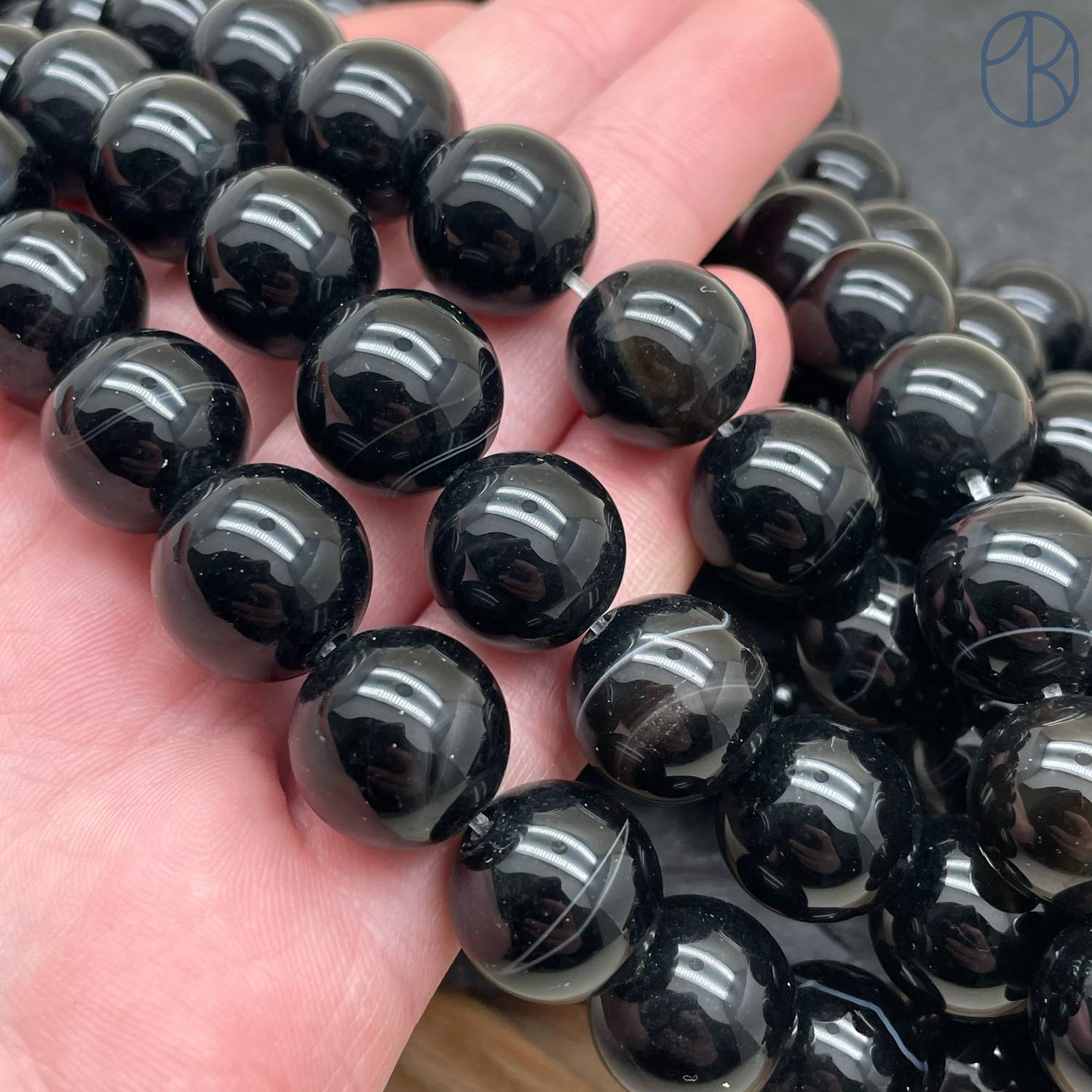 Агат черный с прожилками 12 мм