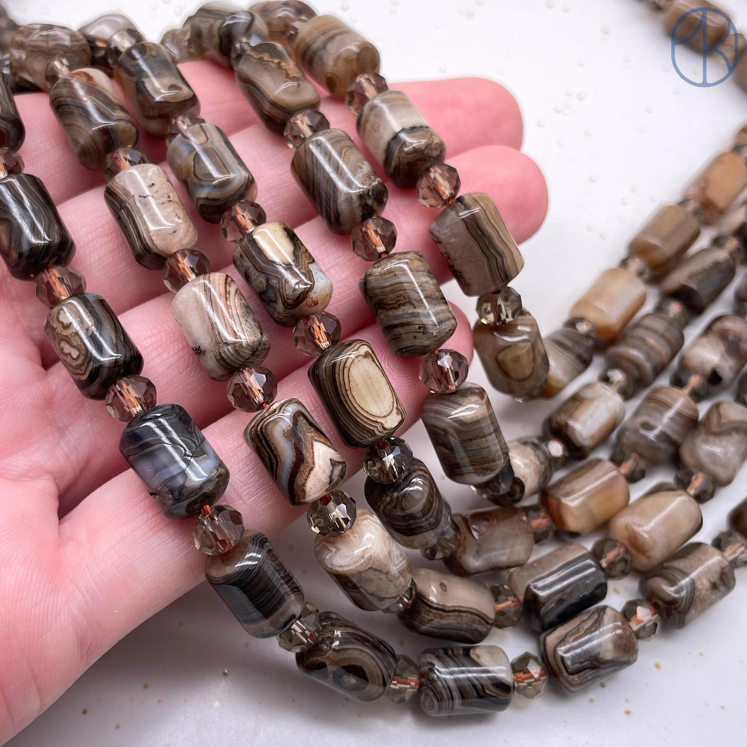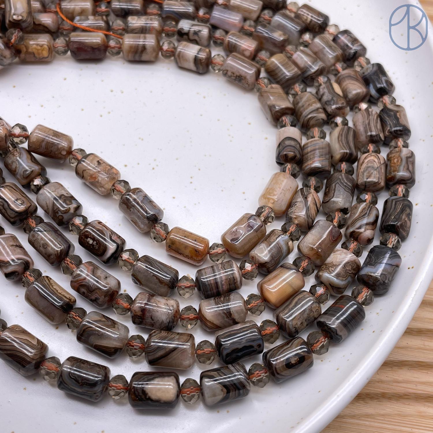 Агат Crazy lace коричневый цилиндр ~ 10х5 мм