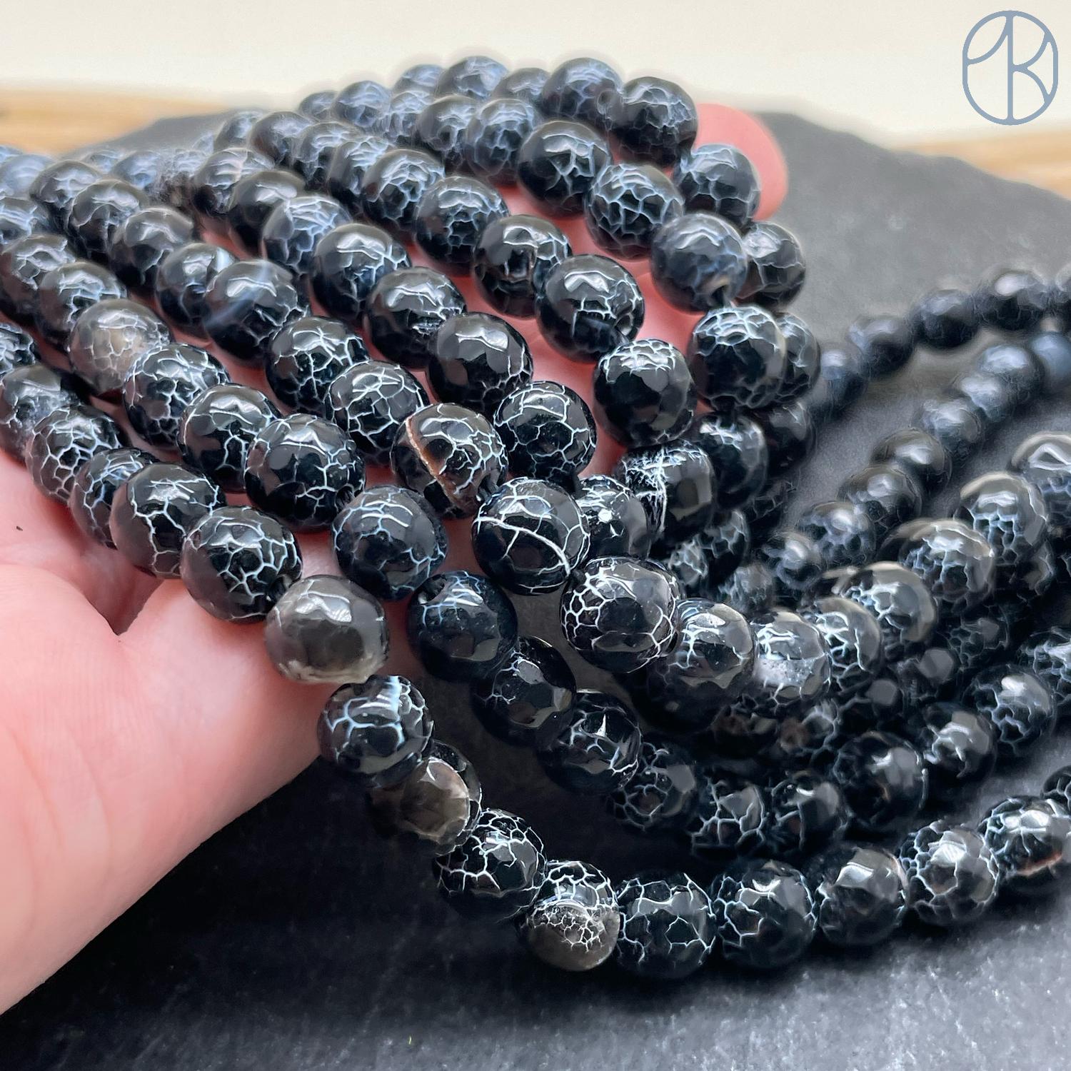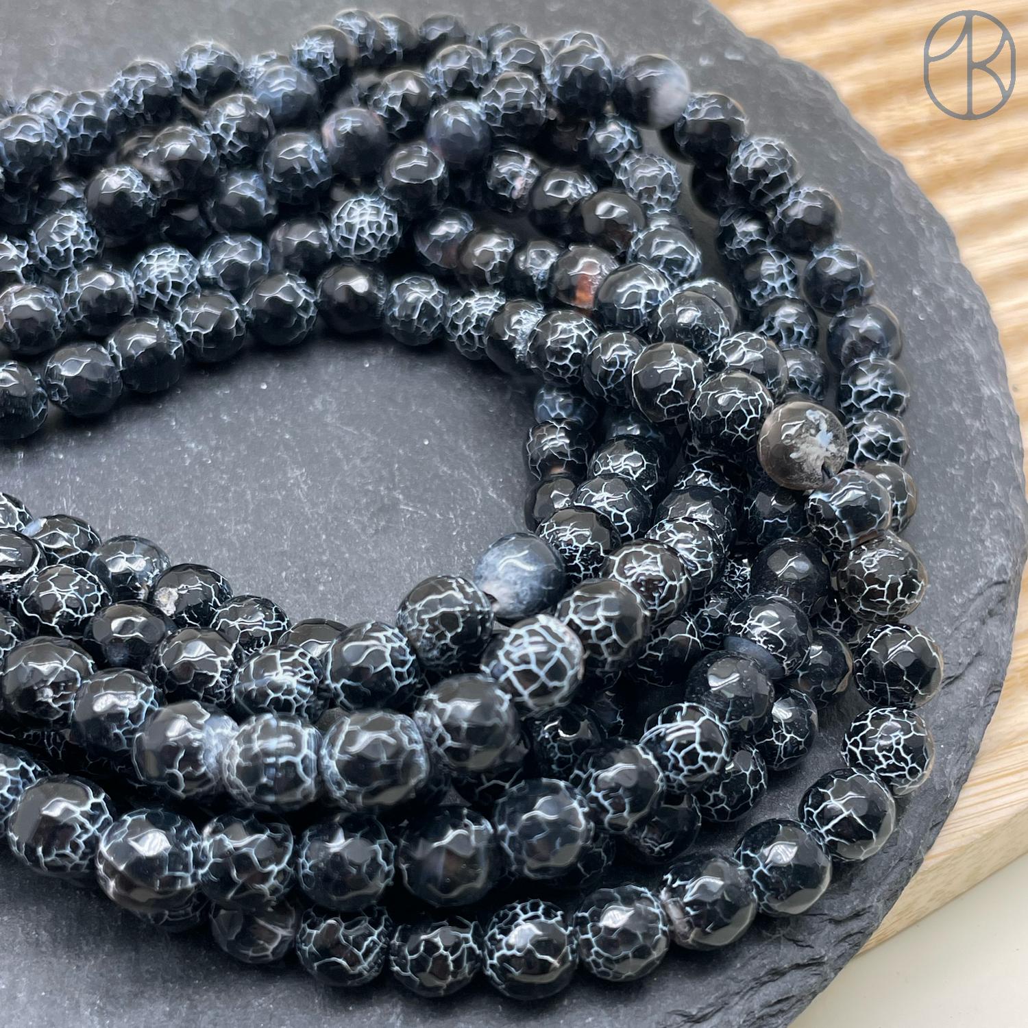 Агат Кракле черный мелкая огранка (128 граней) 8 мм