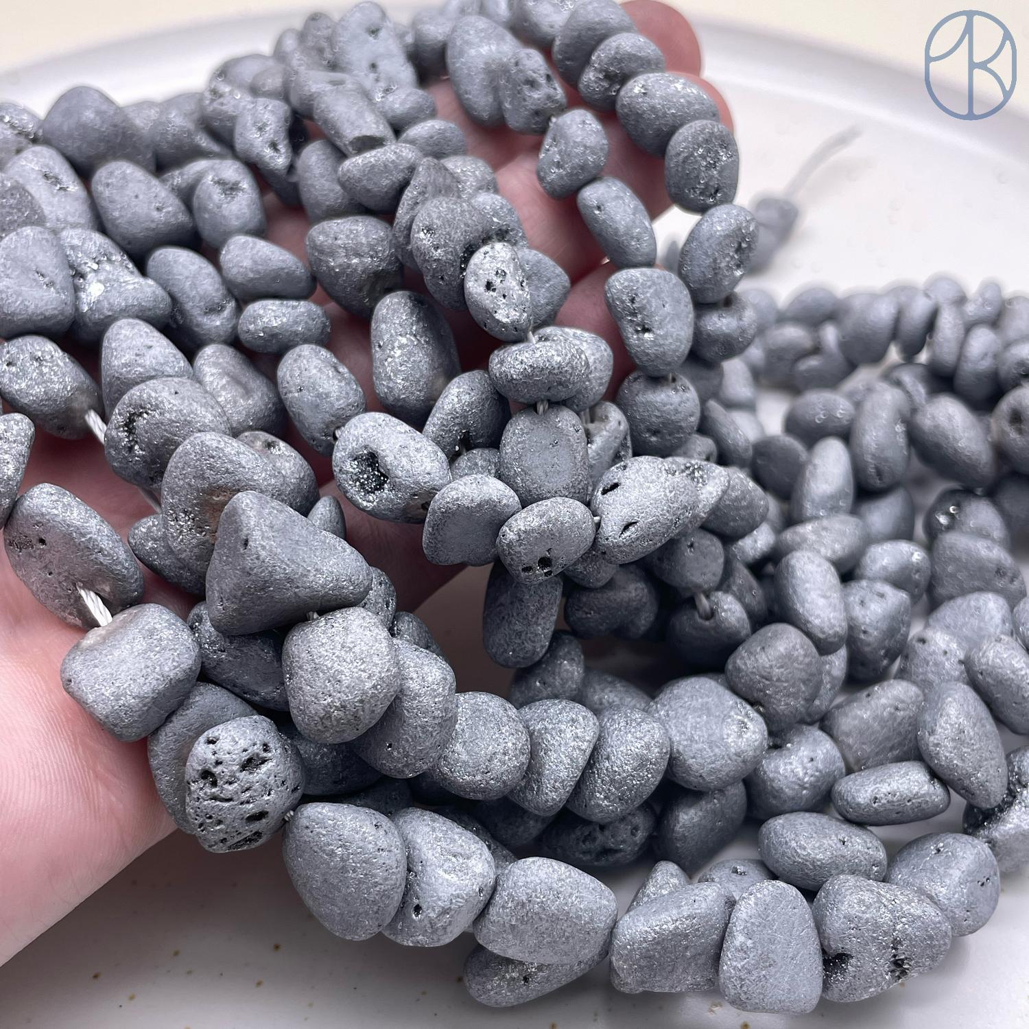 Агат серый тонированный с друзой галтовка 11-15 мм