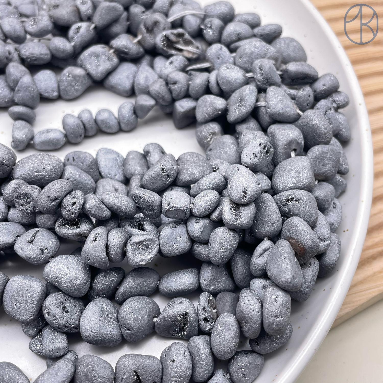Агат серый тонированный с друзой галтовка 8-12 мм