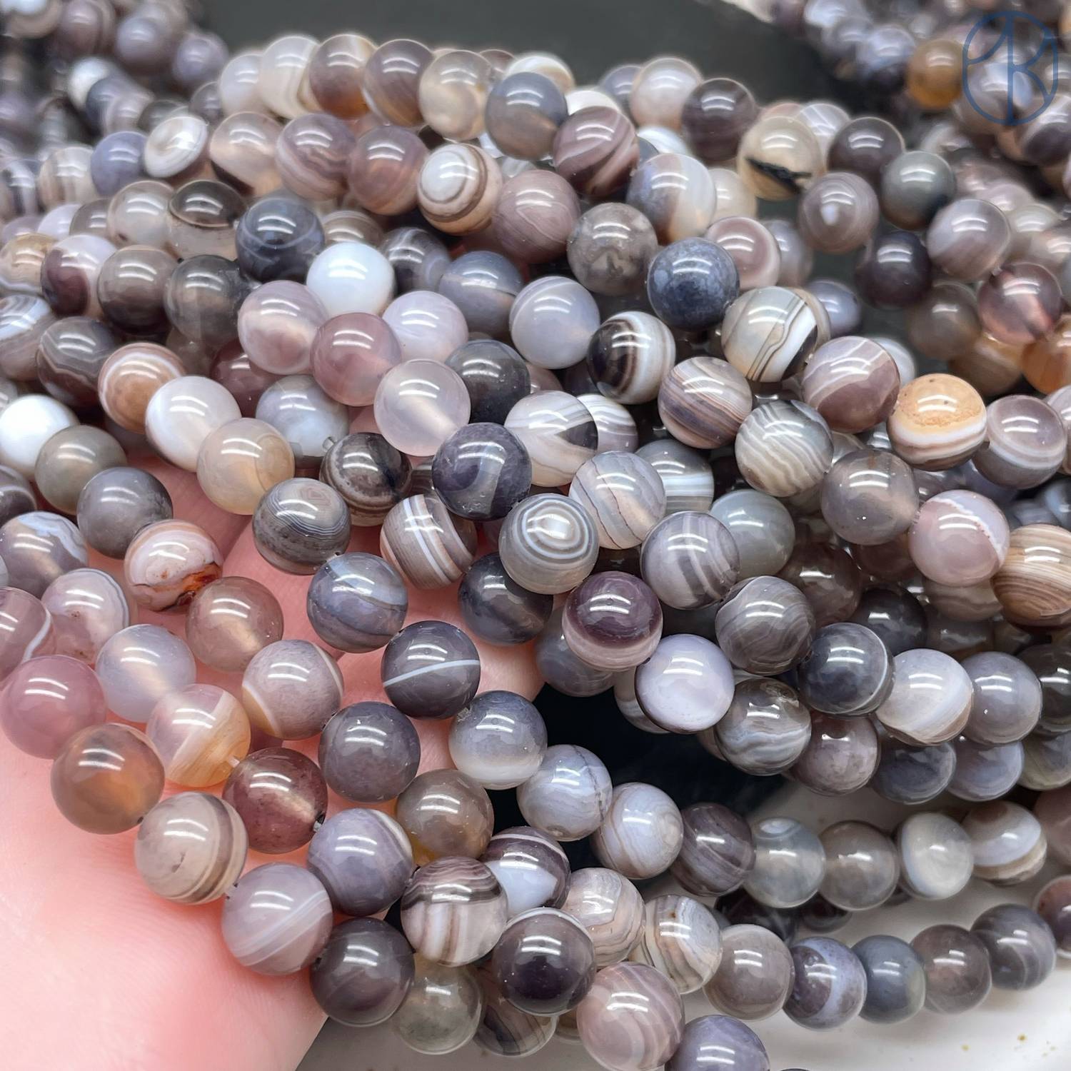 Агат Ботсвана №1 8 мм менее яркий и более мутный.
