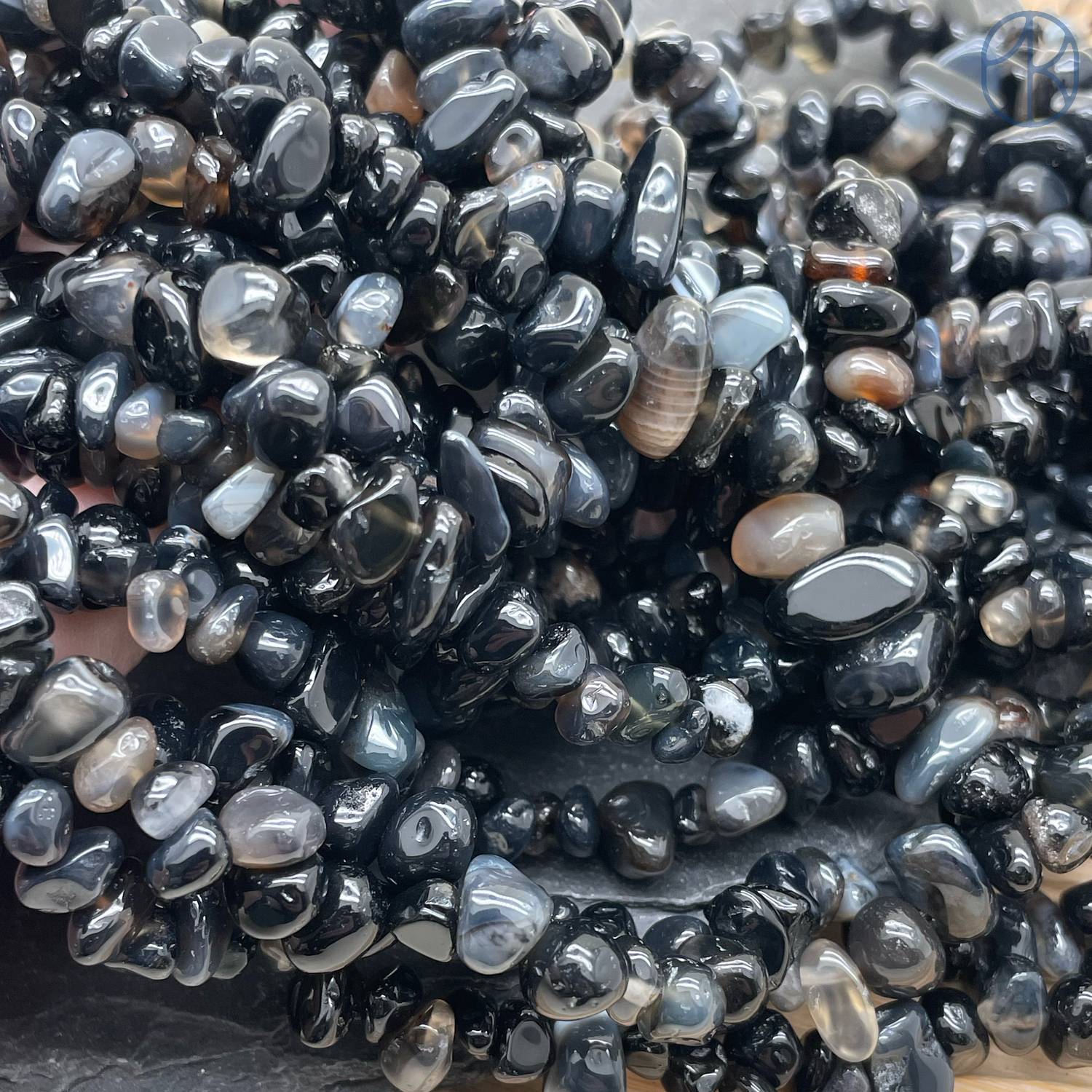 Крошка Агат черный ширина бусин ~ 7-11 мм