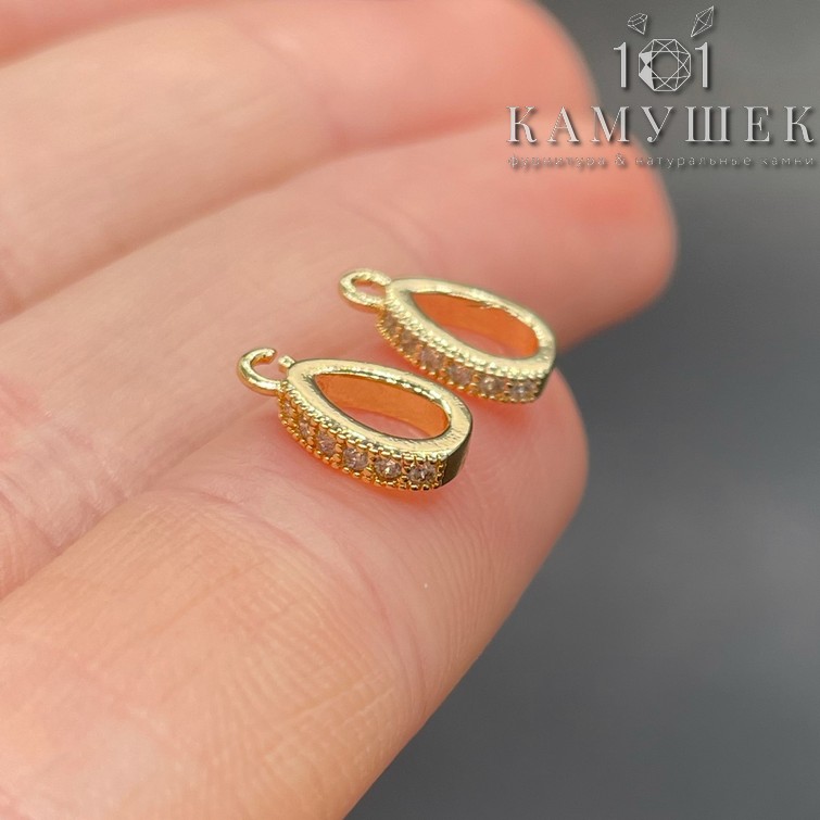 Бейл капля цирконы разъемное кольцо, цвет золото 12х6 мм