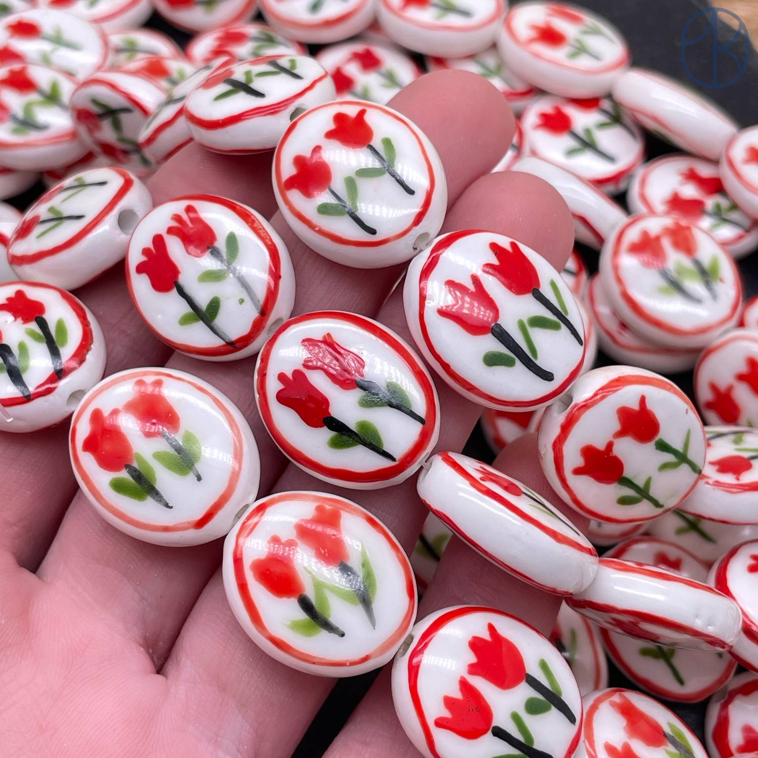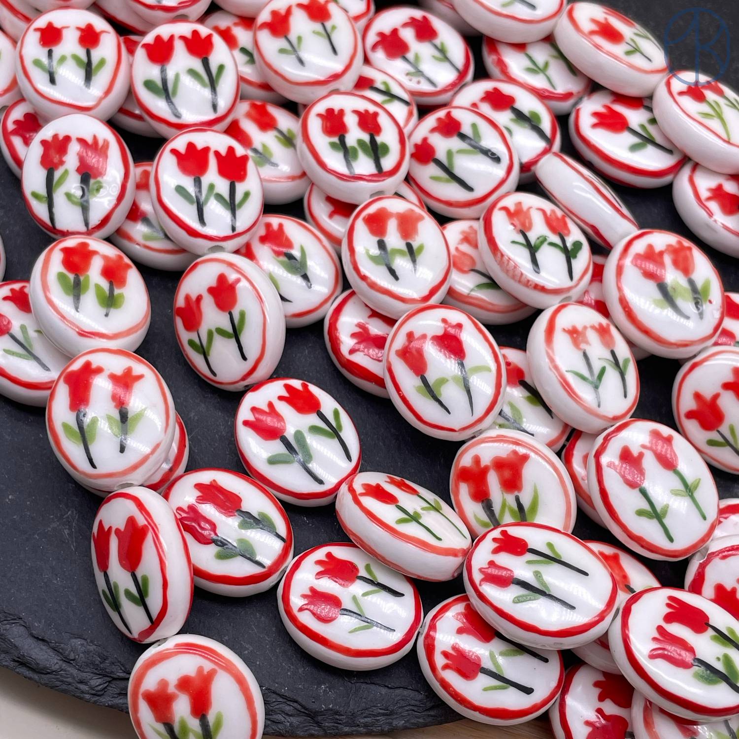 Керамика овал красный цветок гжель 20 мм