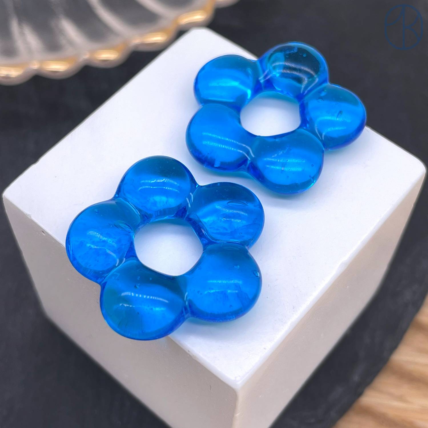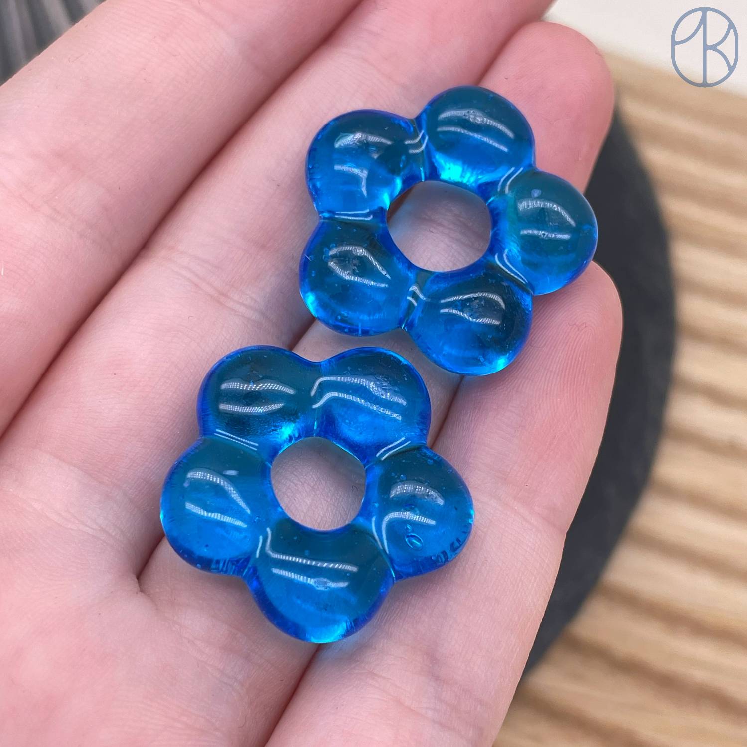 Подвеска бублик цветок №1 синий 24 мм