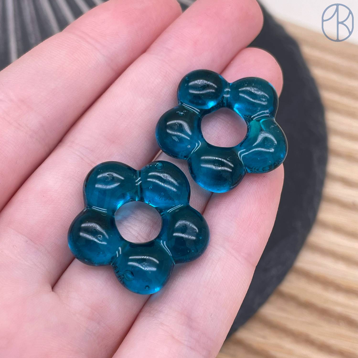 Подвеска бублик цветок №1 темно-бирюзовый 24 мм