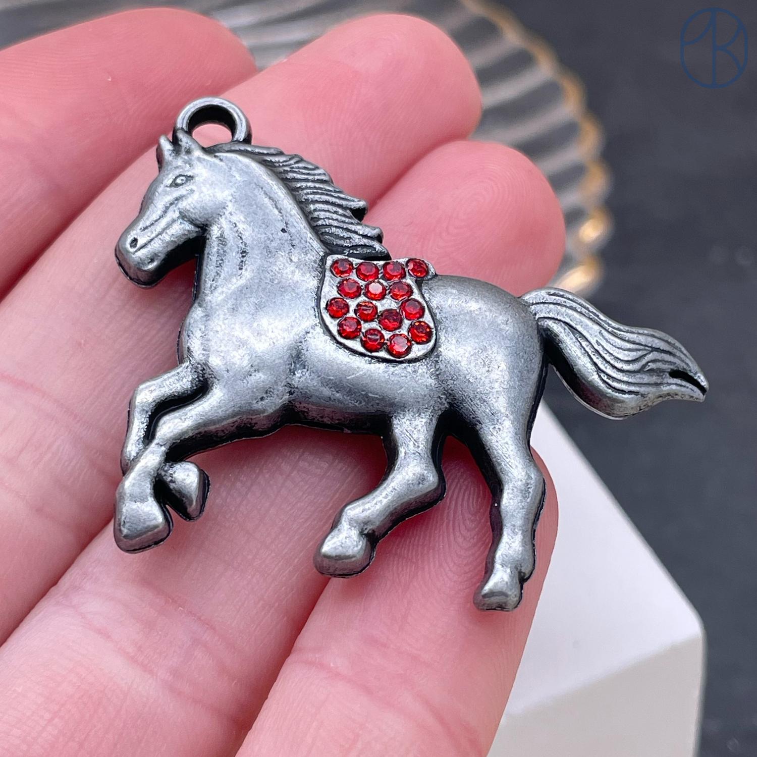 Подвеска лошадь фуксия с переливом 49х52 мм