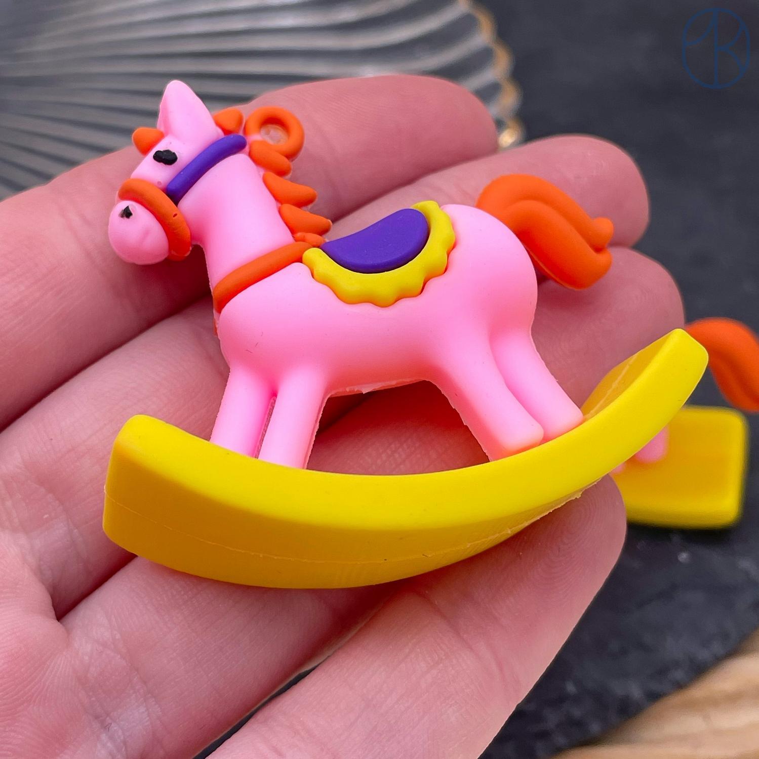 Подвеска лошадь розовая 49х51 мм