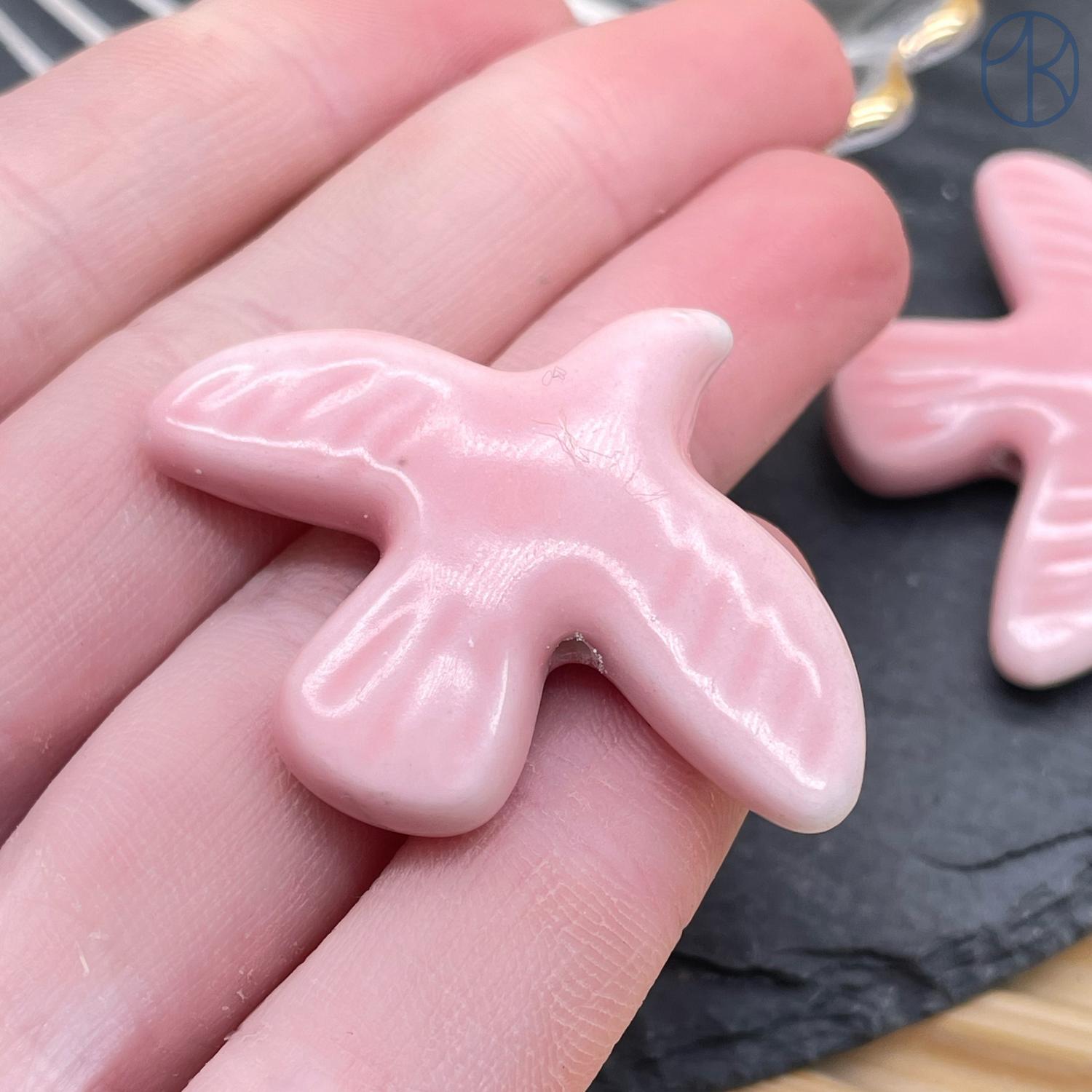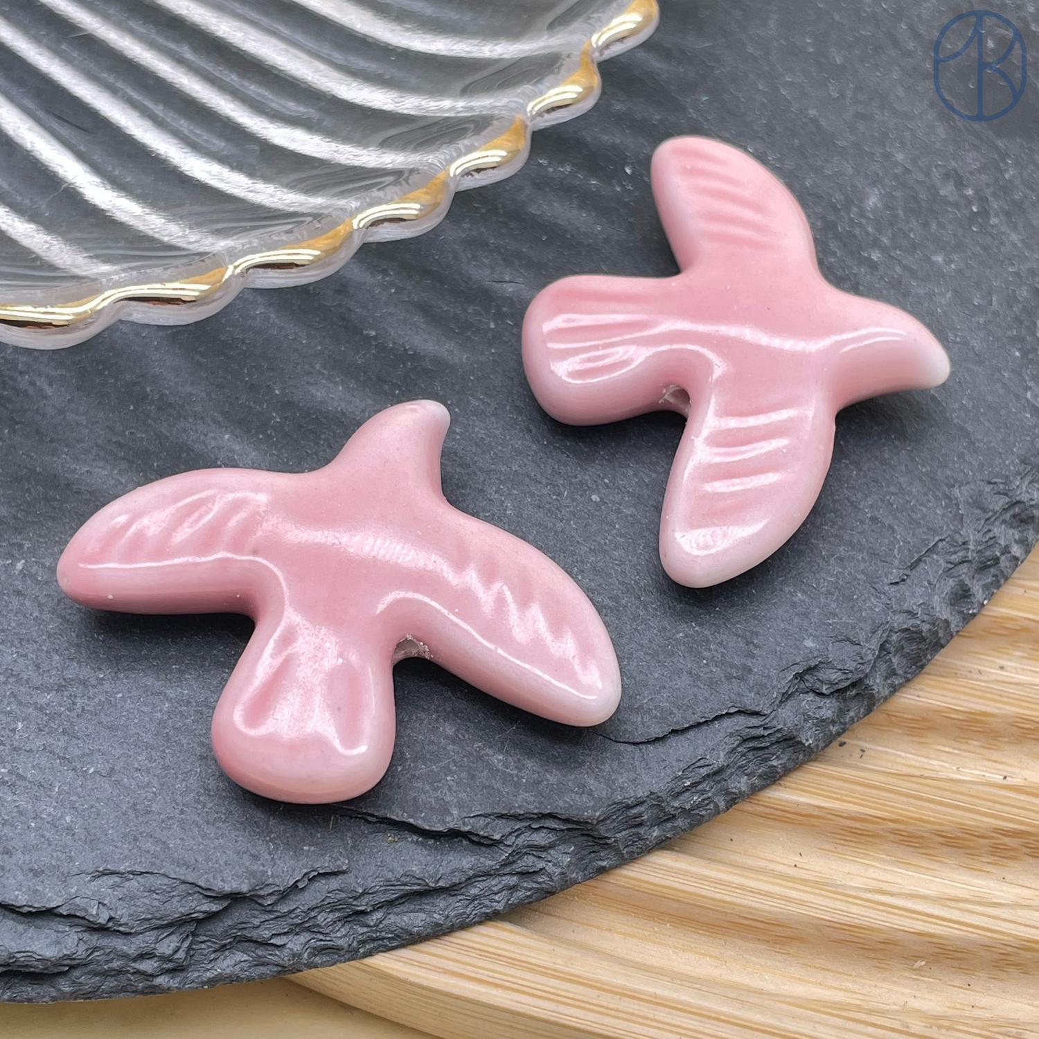 Бусина птица, керамика, цвет розовый 40х30 мм