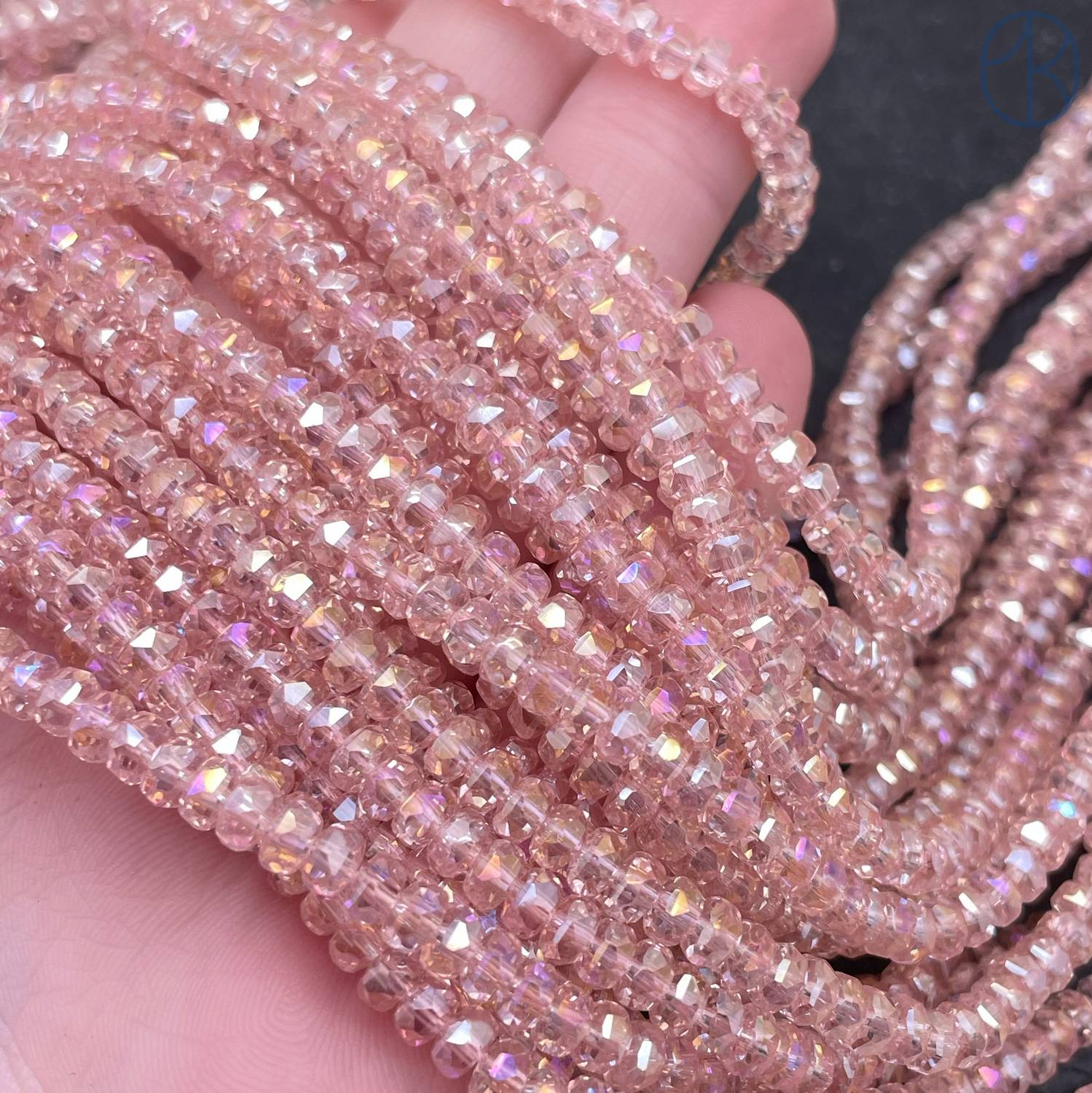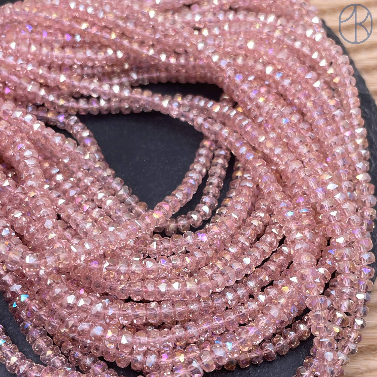 Стекло рондель огранка розовое с переливом 4х2 мм