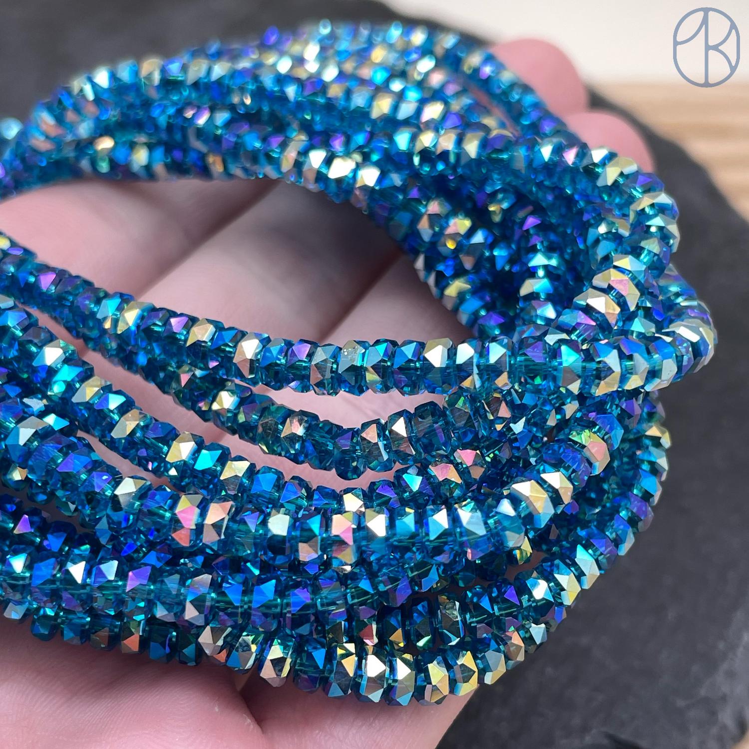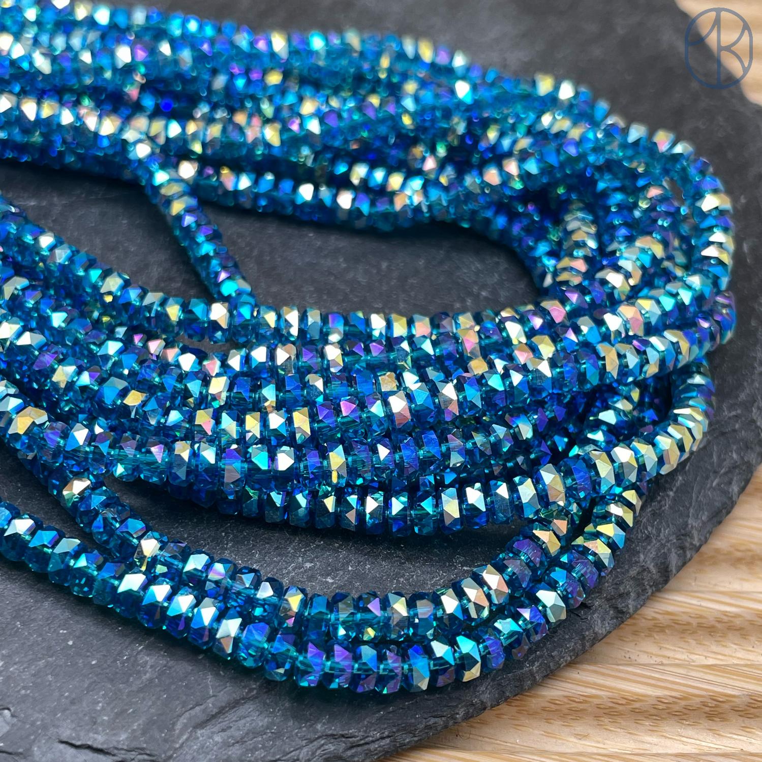 Стекло рондель огранка темно-голубое с переливом 4х2 мм