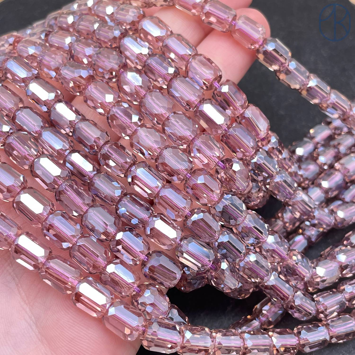 Стекло цилиндр огранка темно-розоовое 8 мм