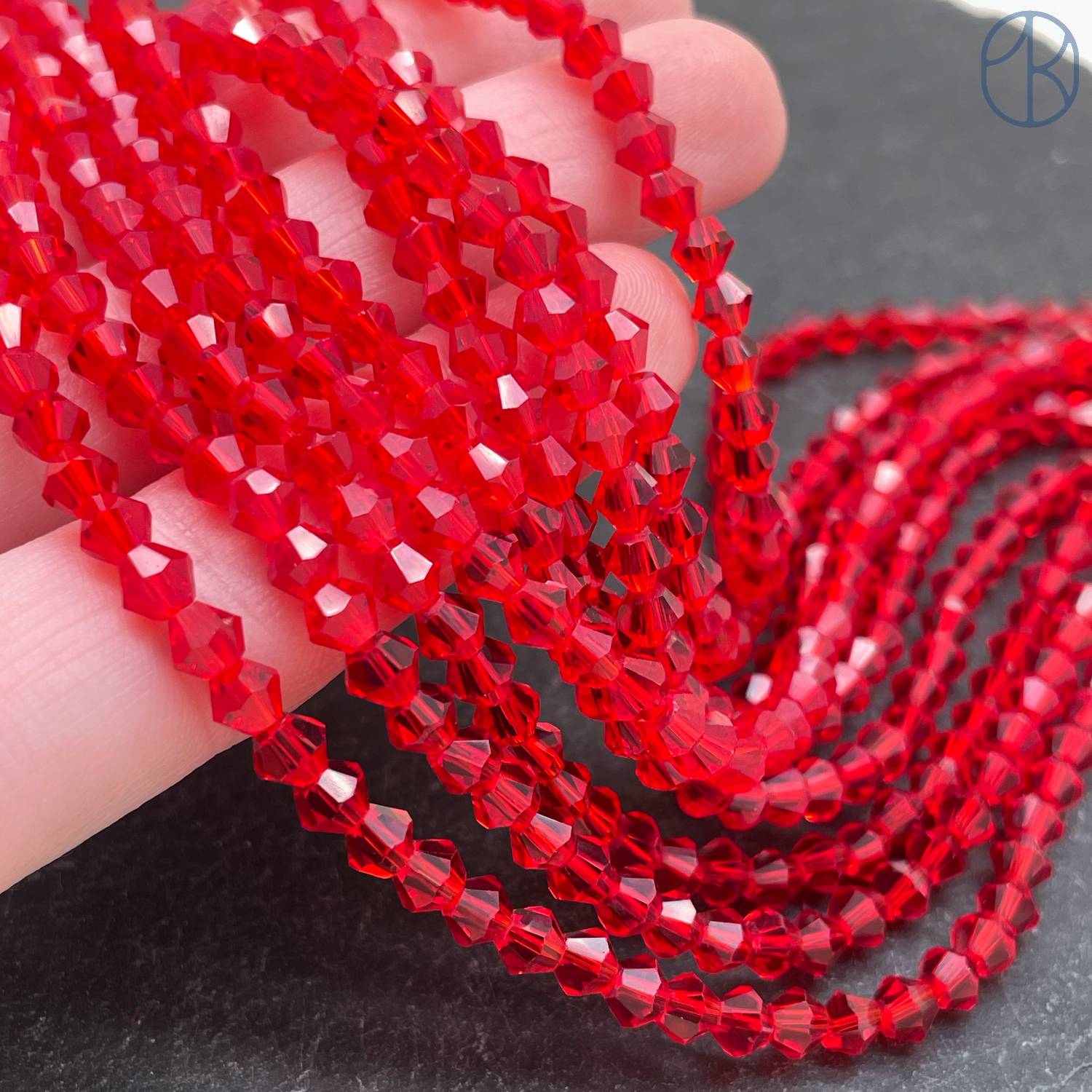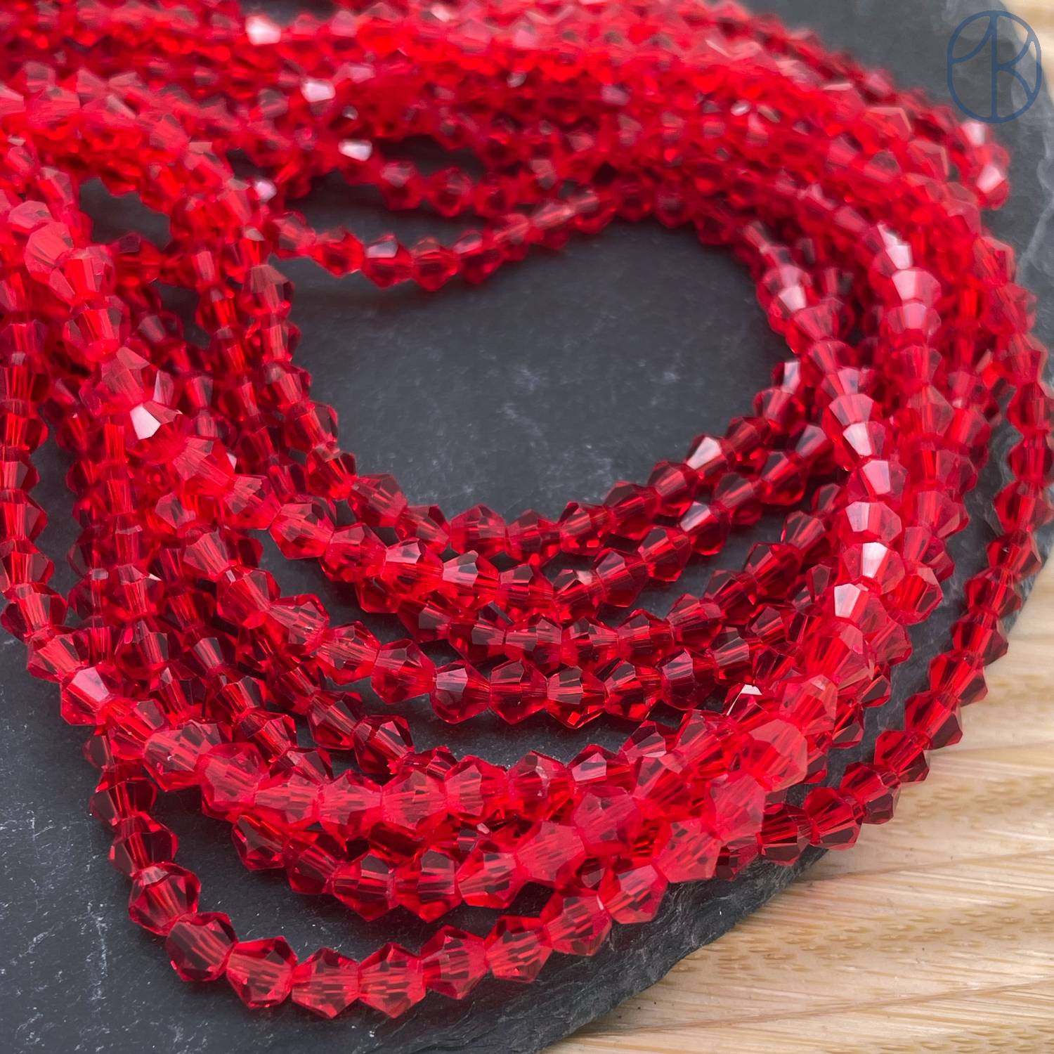 Стекло биконус красное 4 мм