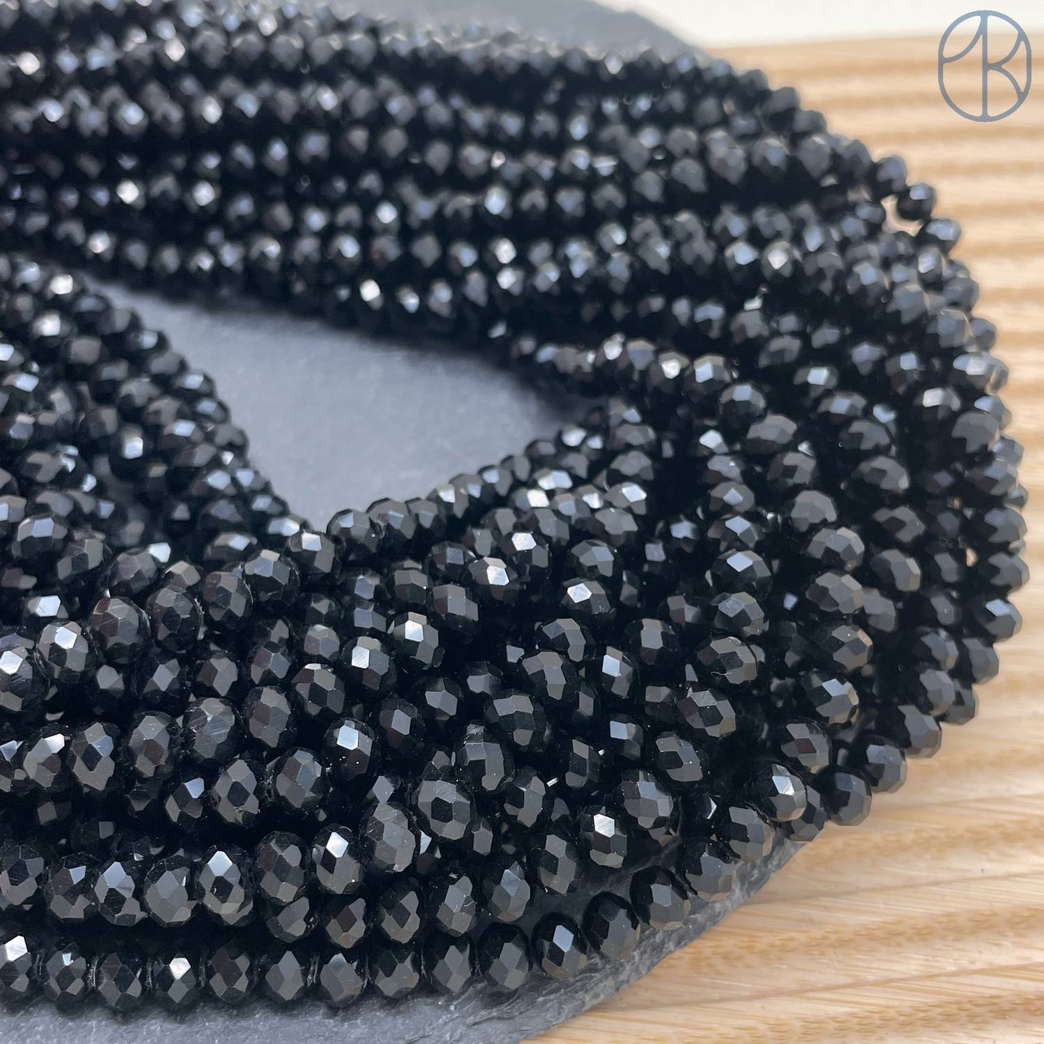 Стекло рондель огранка черное 6 мм