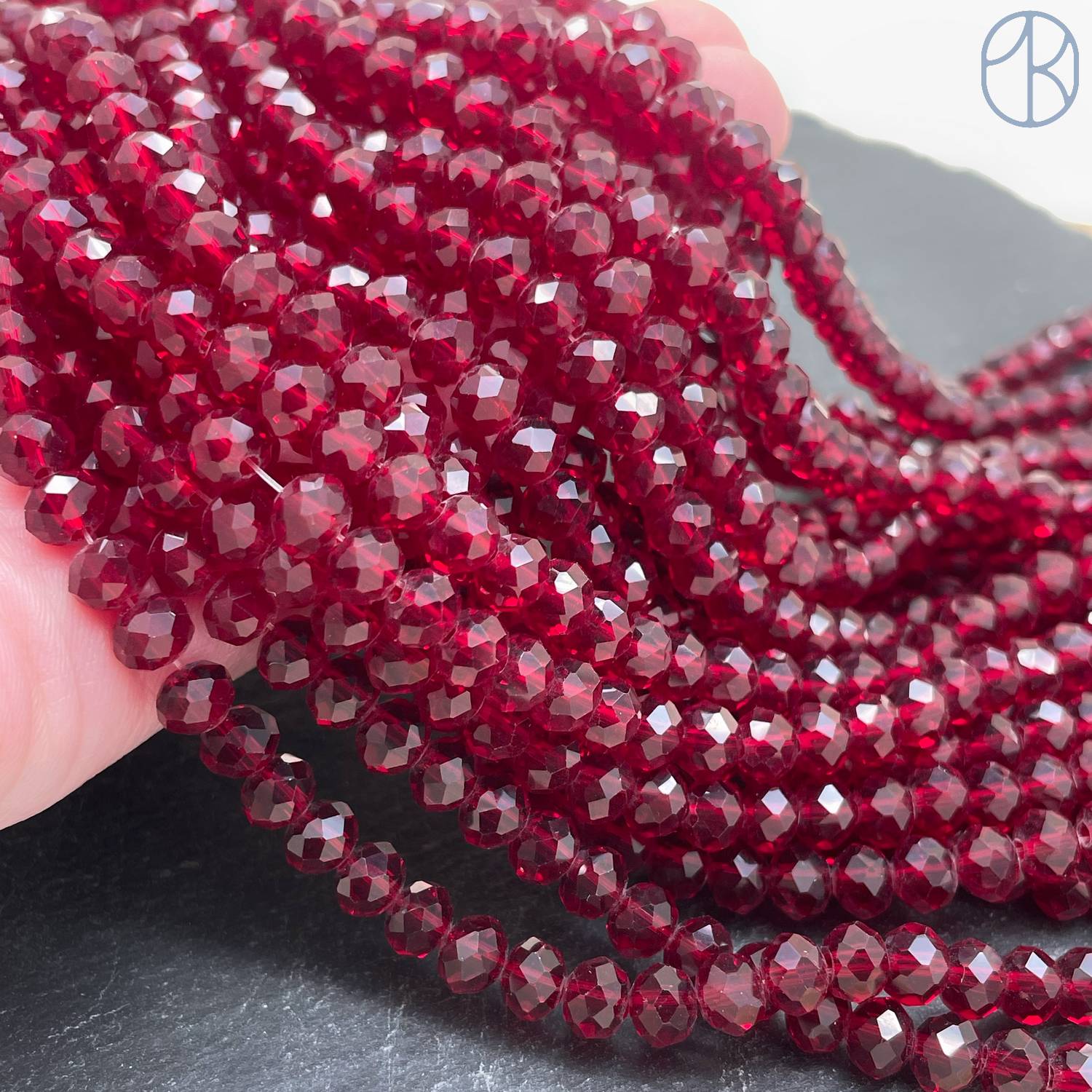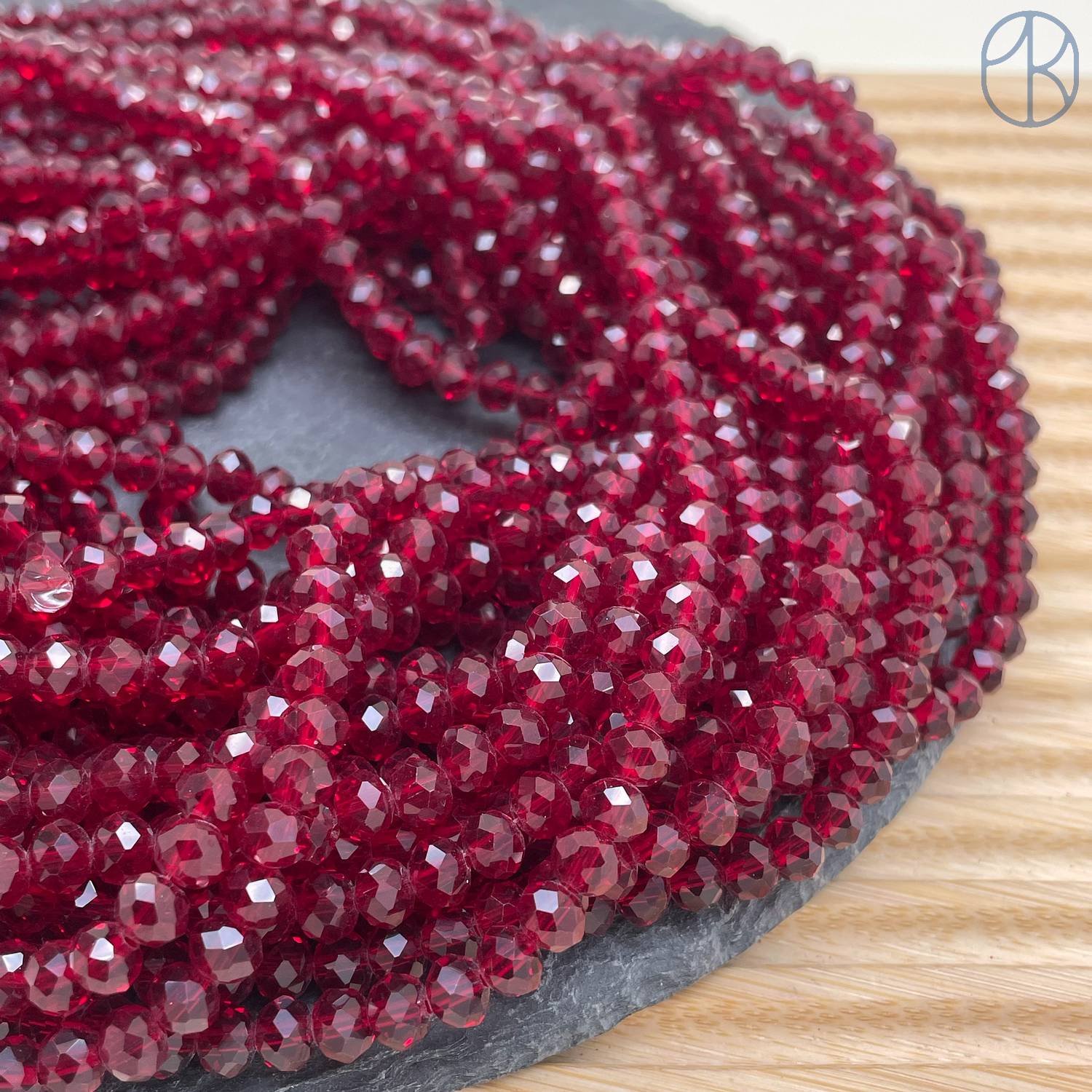 Стекло рондель огранка темно-красное 6 мм