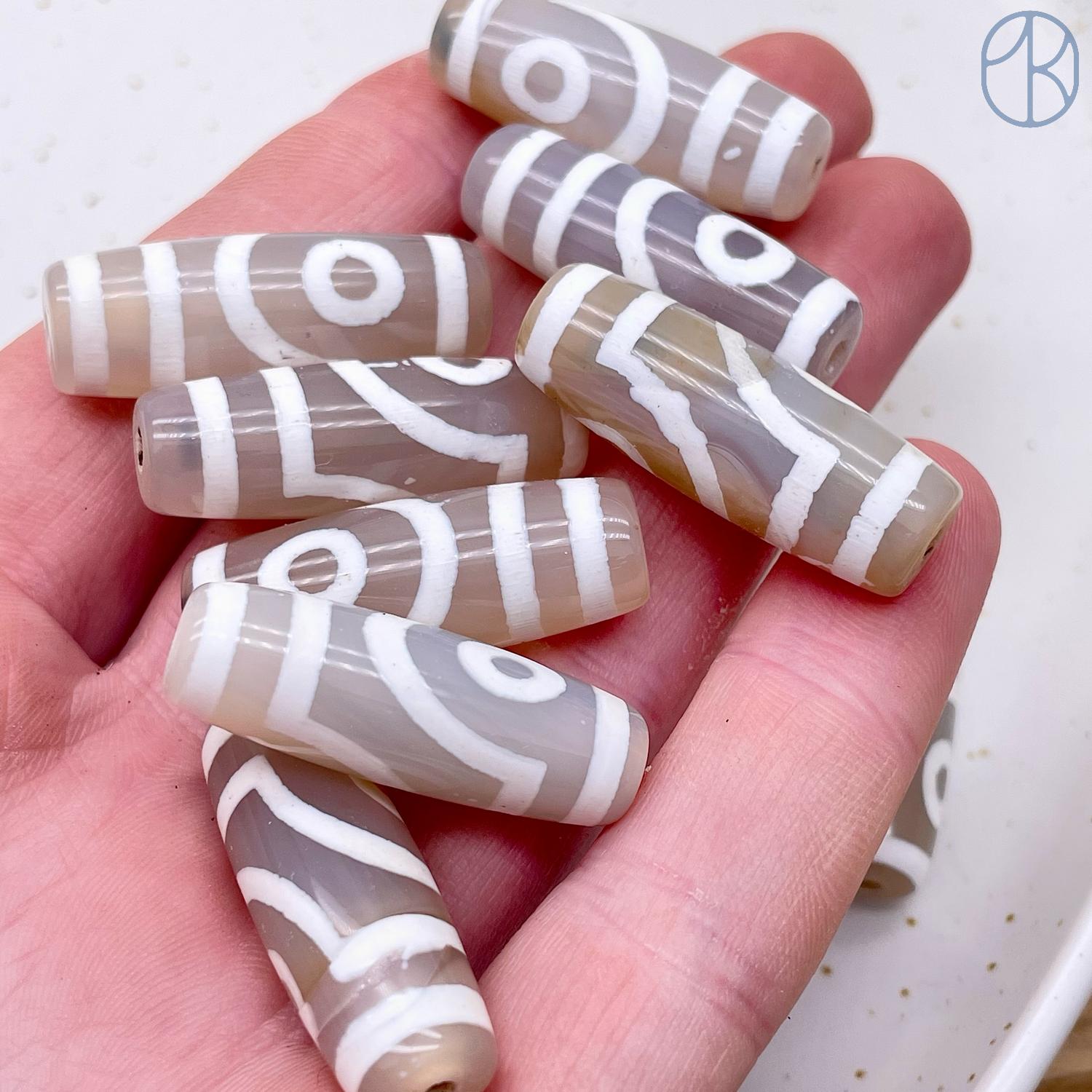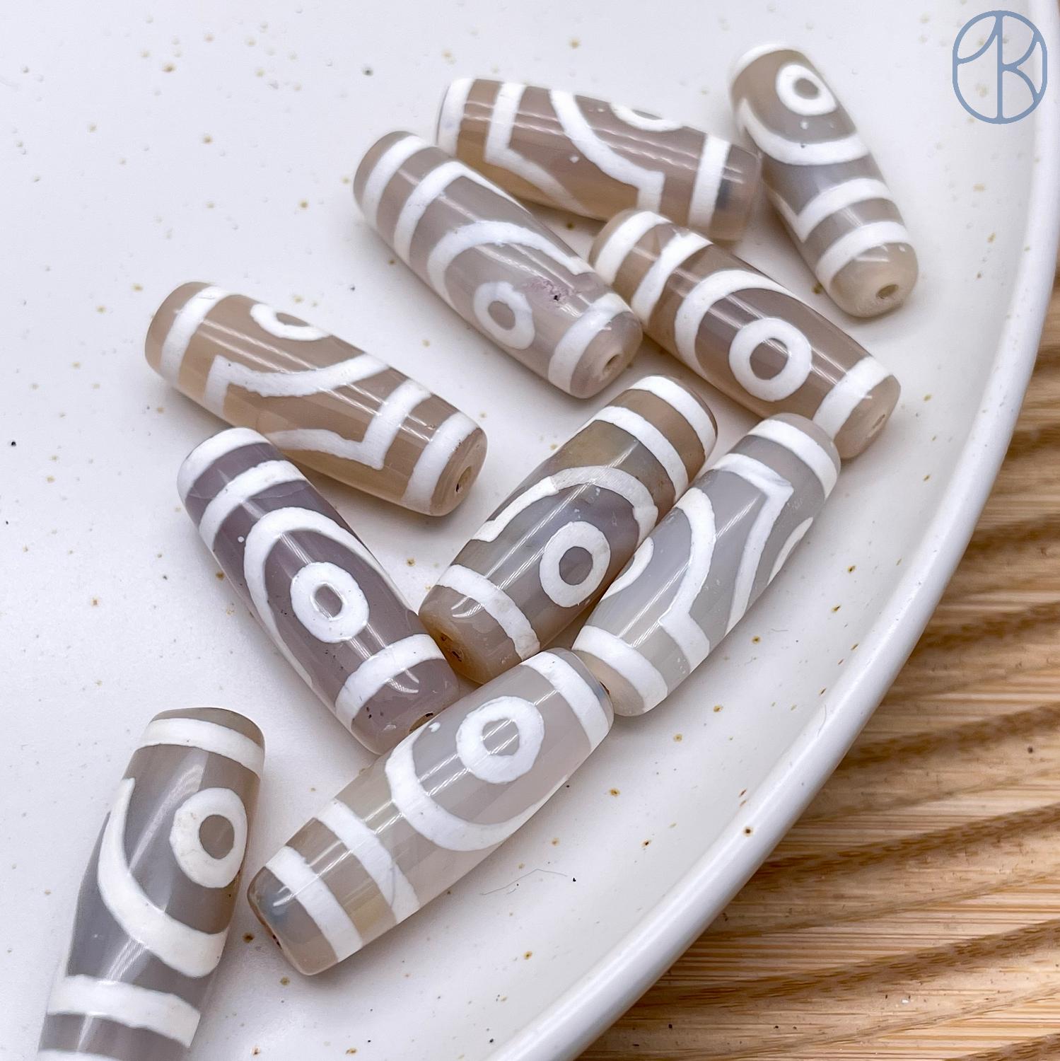 Бусина Дзи 2 глаза серо-белый бочонок 30х11 мм