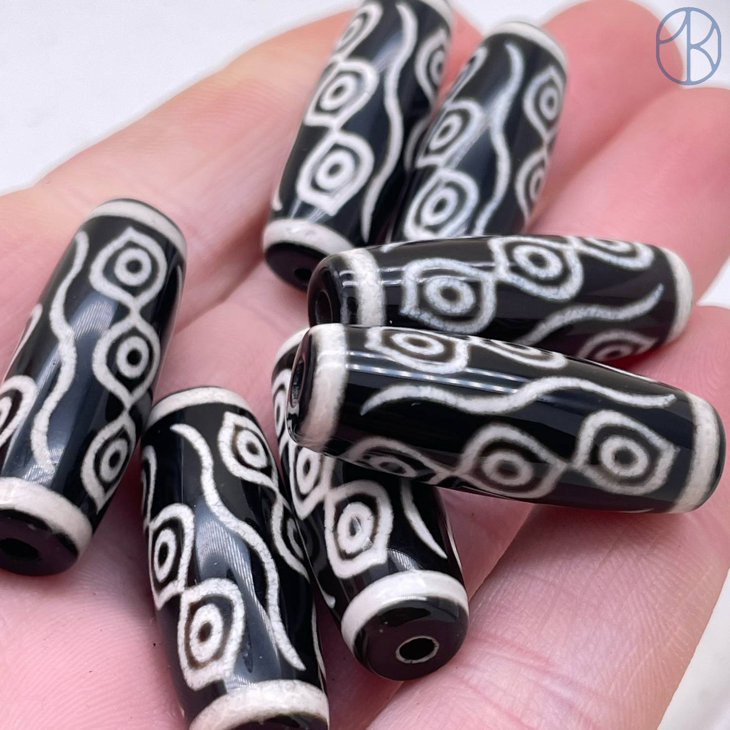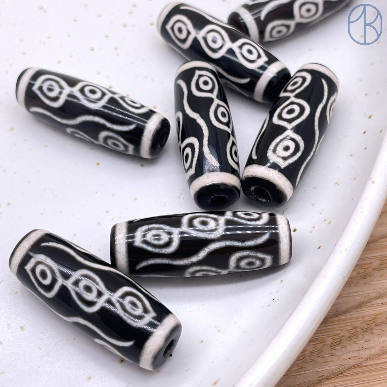 Бусина Дзи 9 глаз бело-черный бочонок 30х11 мм