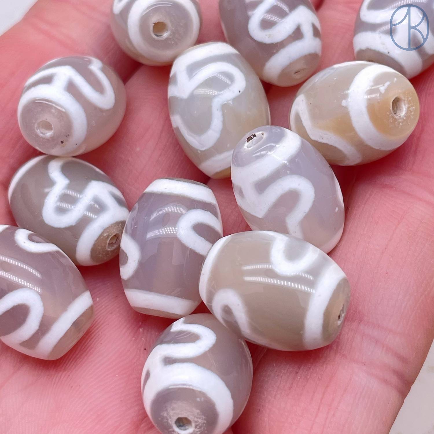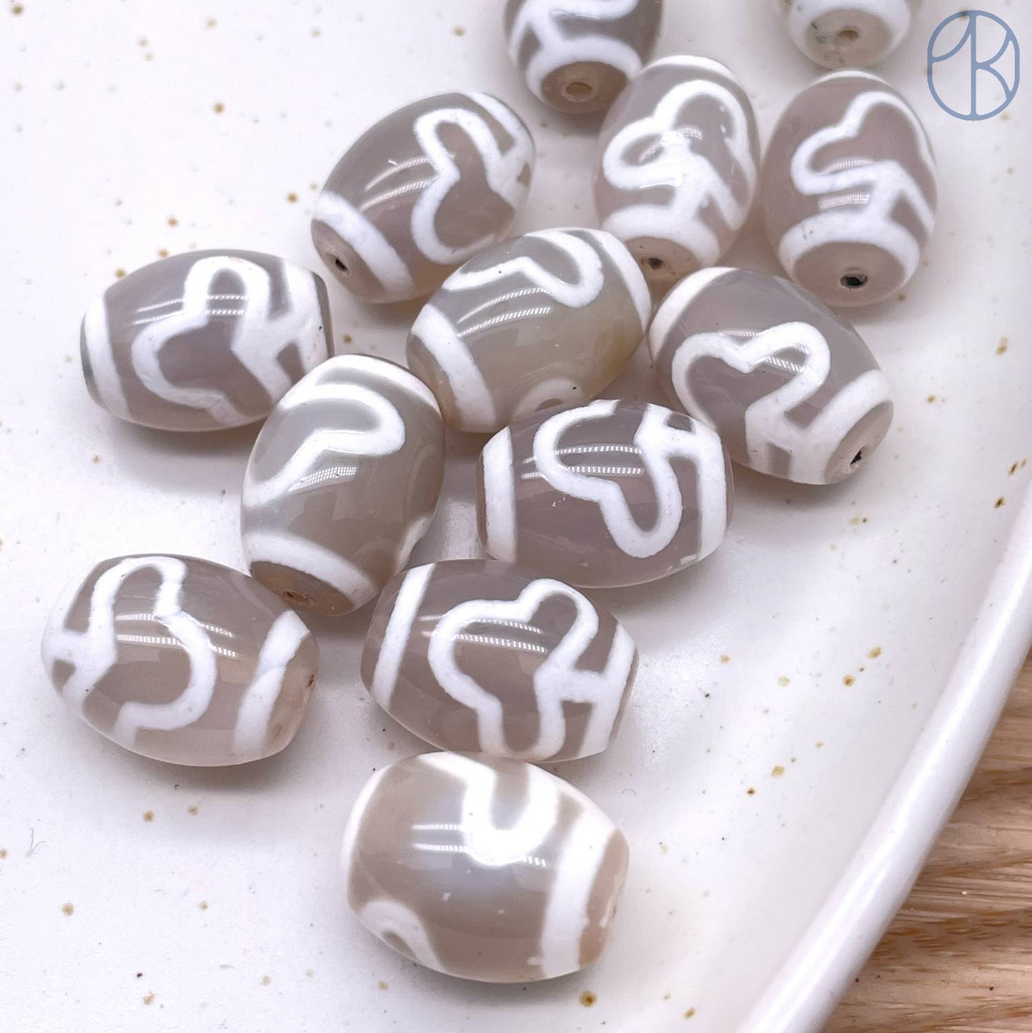 Бусина Дзи Бодхи серо-белый бочонок уп. 5шт 16х12 мм