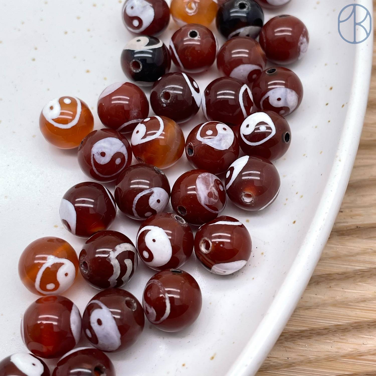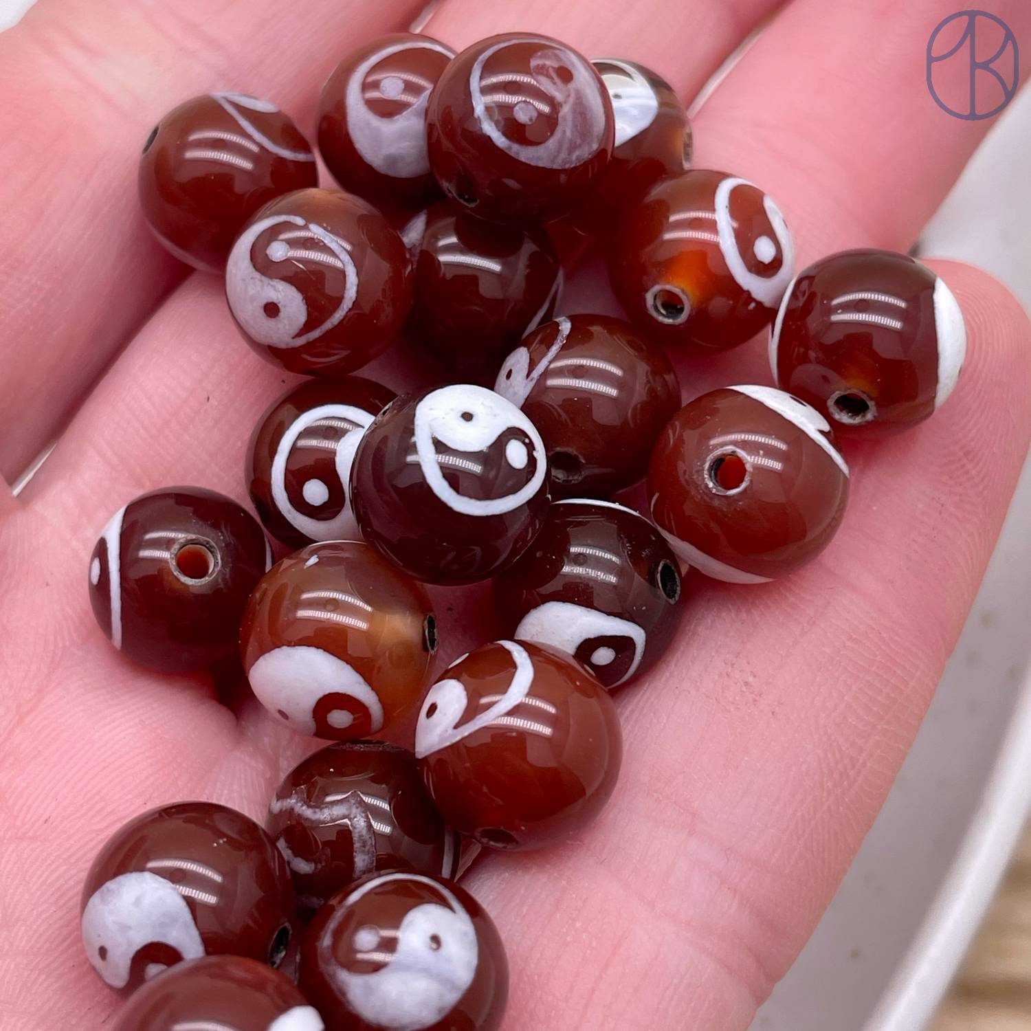 Бусина Дзи Инь-Янь коричнево-белый шар уп. 5шт 10 мм