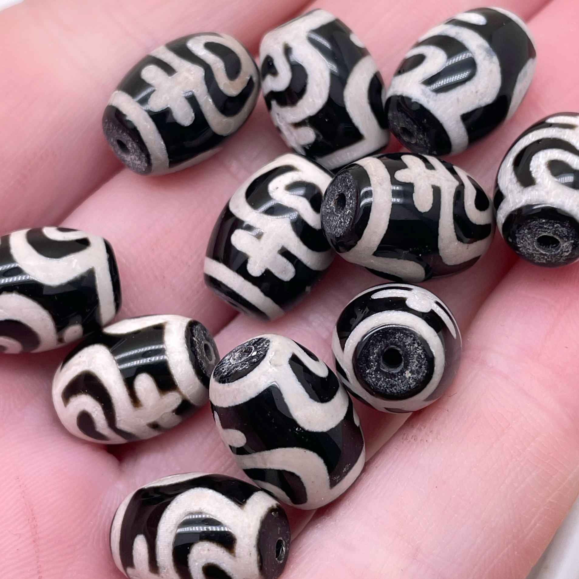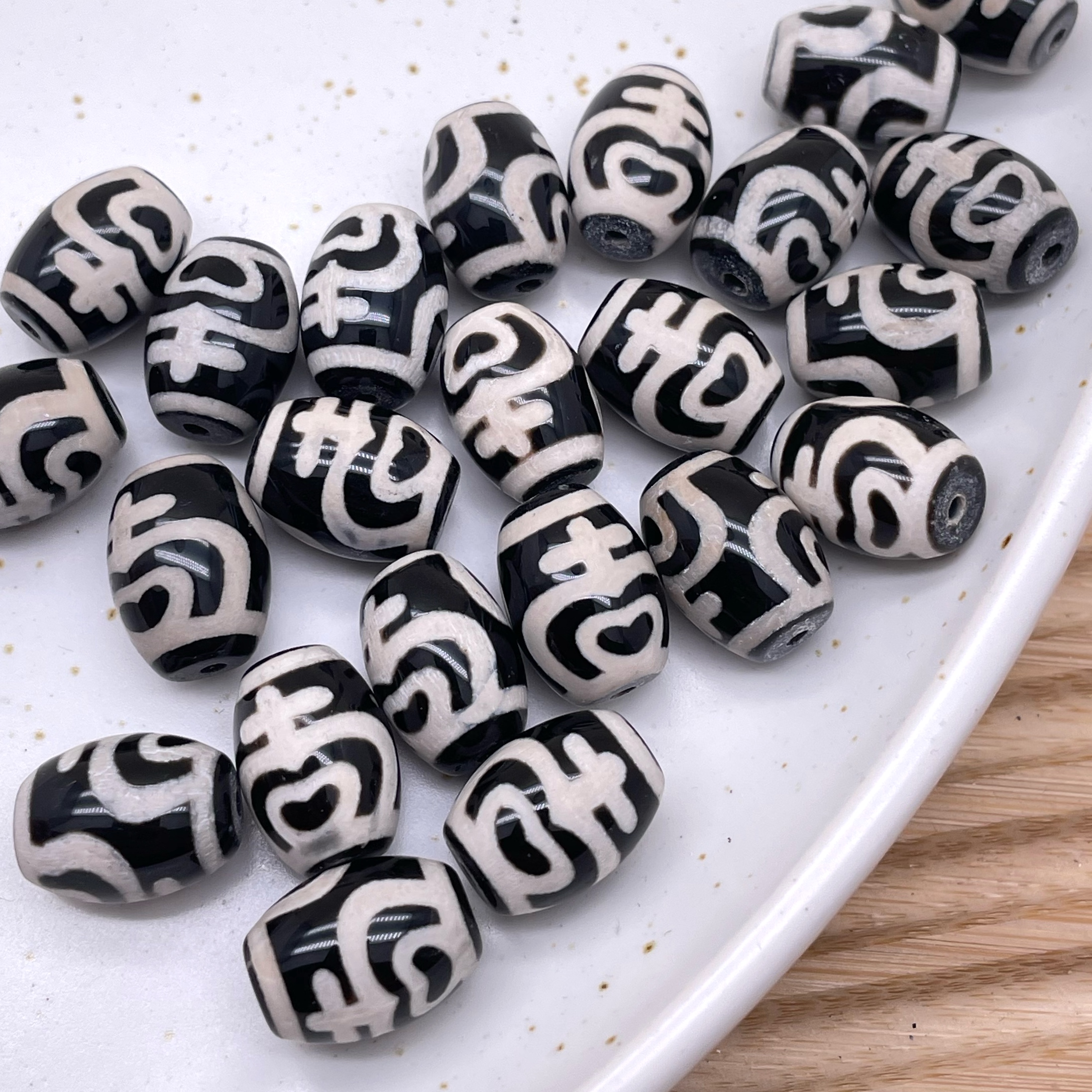 Бусина Дзи Сосуд изобилия черно-белый бочонок уп.5 шт 16х12 мм