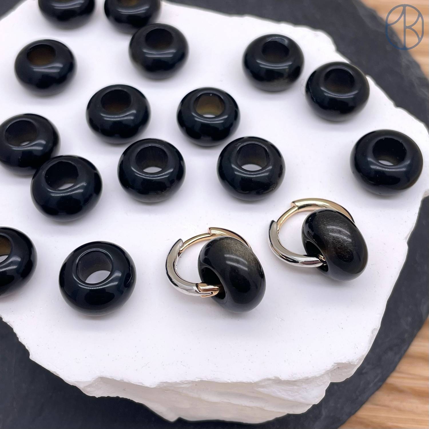 Бублик обсидиан с золотым отливом 14 мм