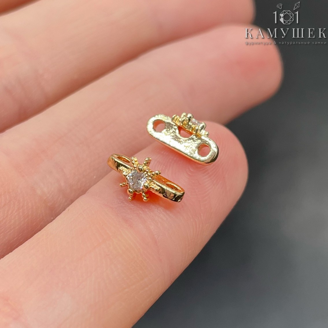 Бусина на 2 ряда циркон, цвет золото 10х5 мм