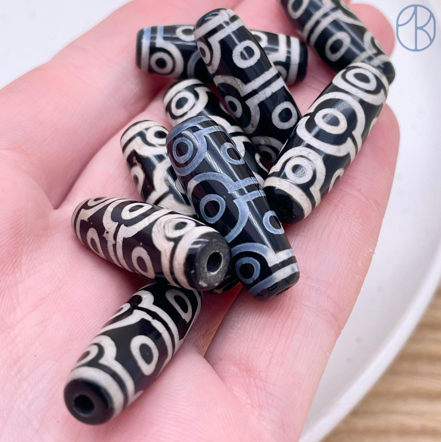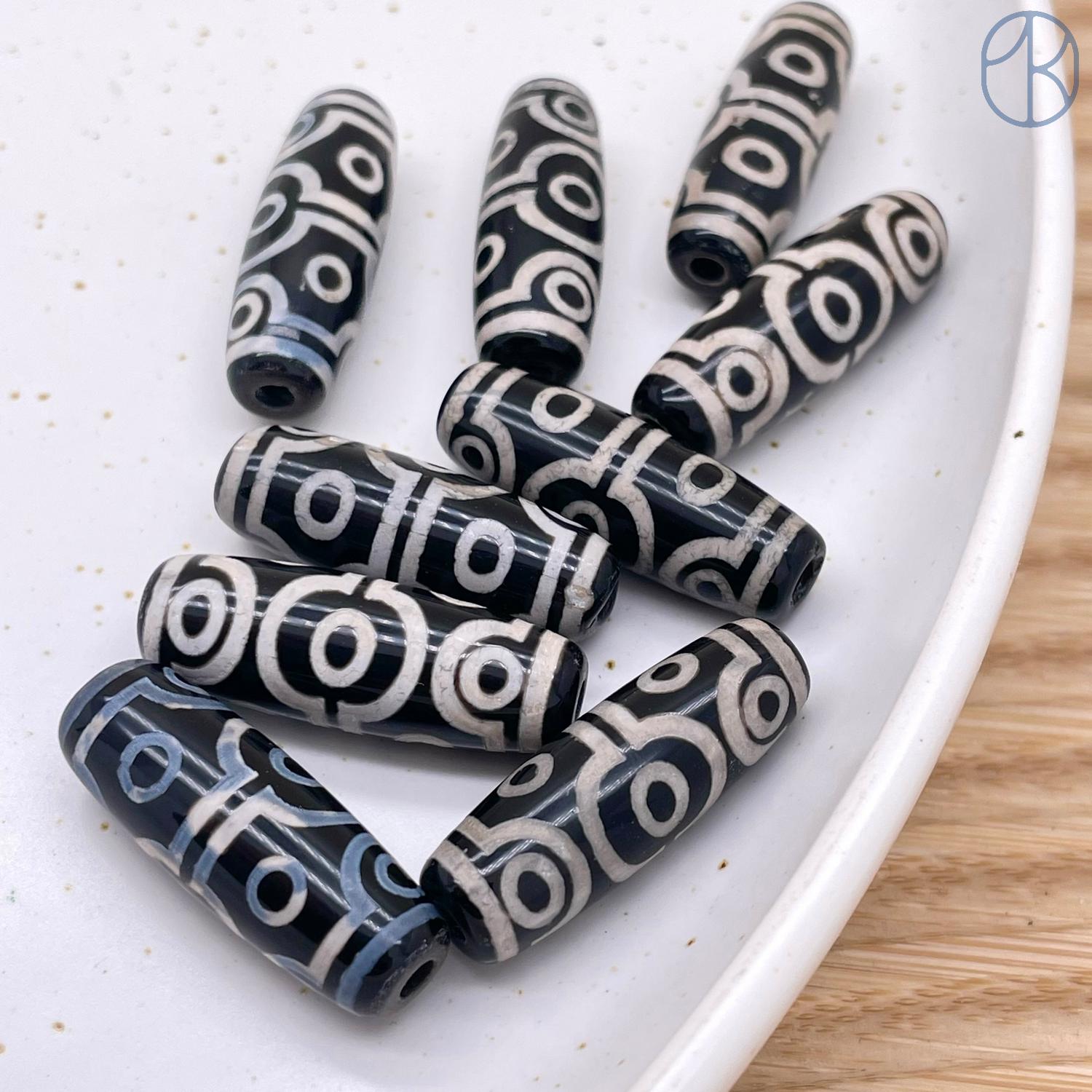 Бусина Дзи 10 глаз черно-белый бочонок 30*11 мм