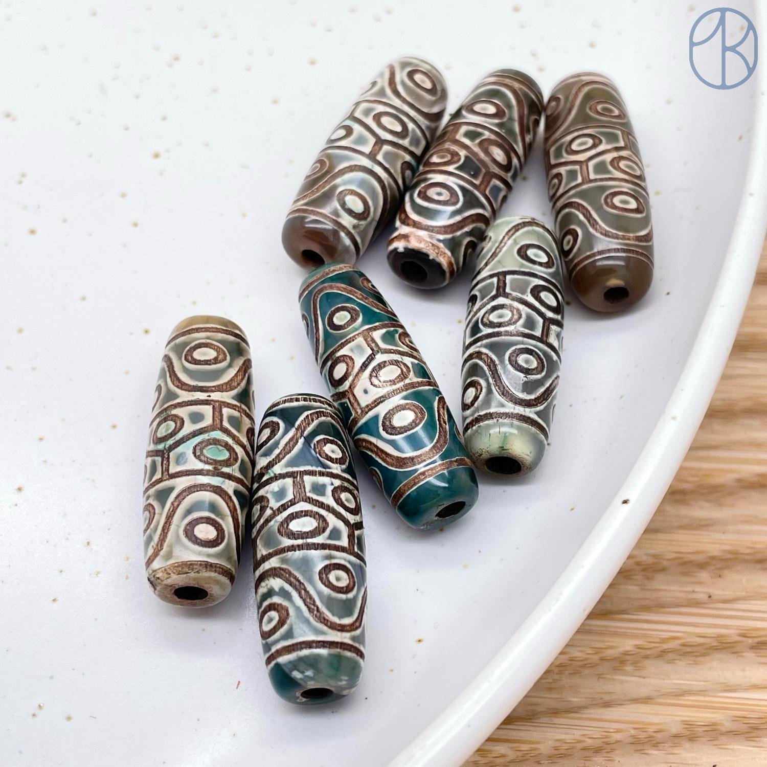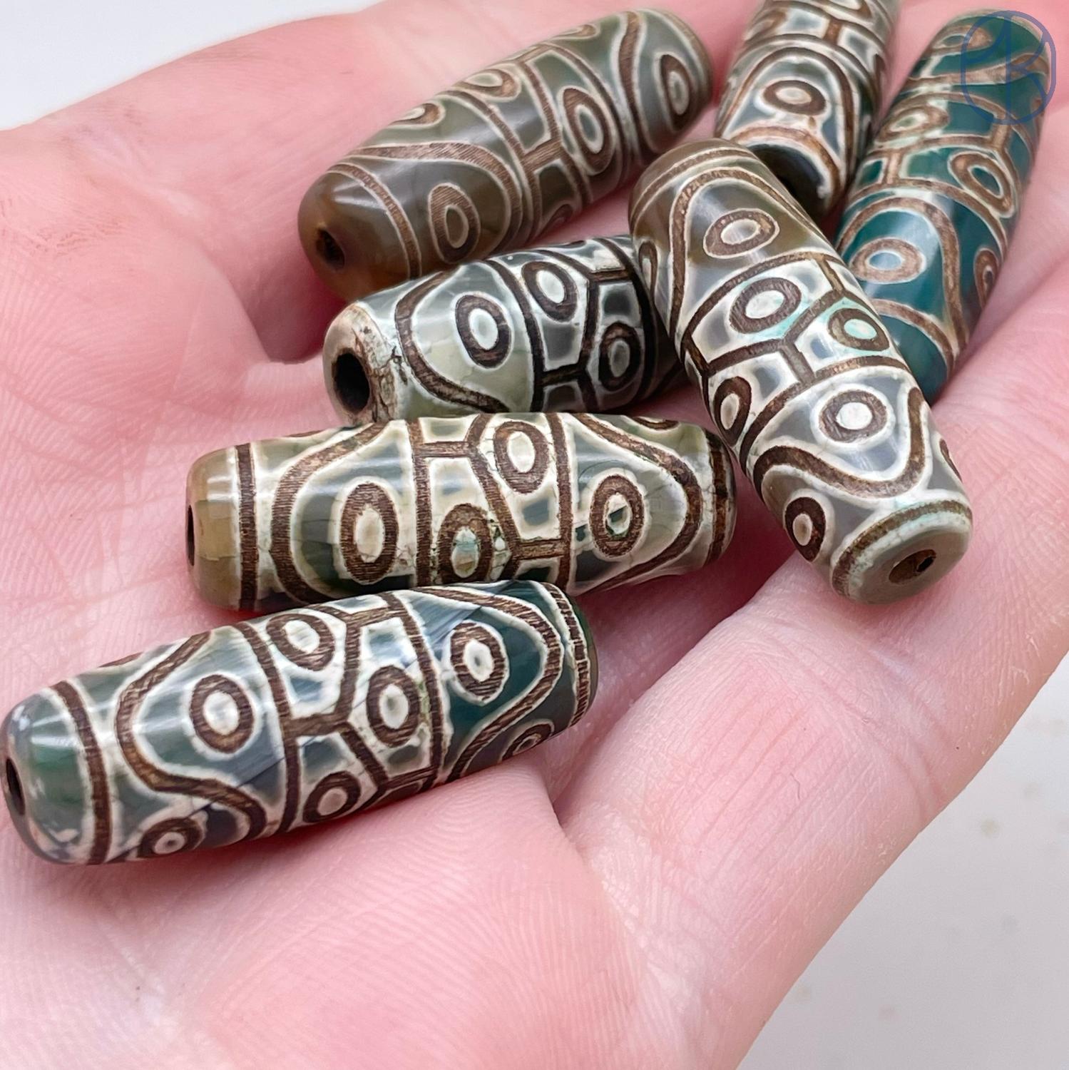 Бусина Дзи 14 глаз серо-зеленая бочонок 30*11 мм