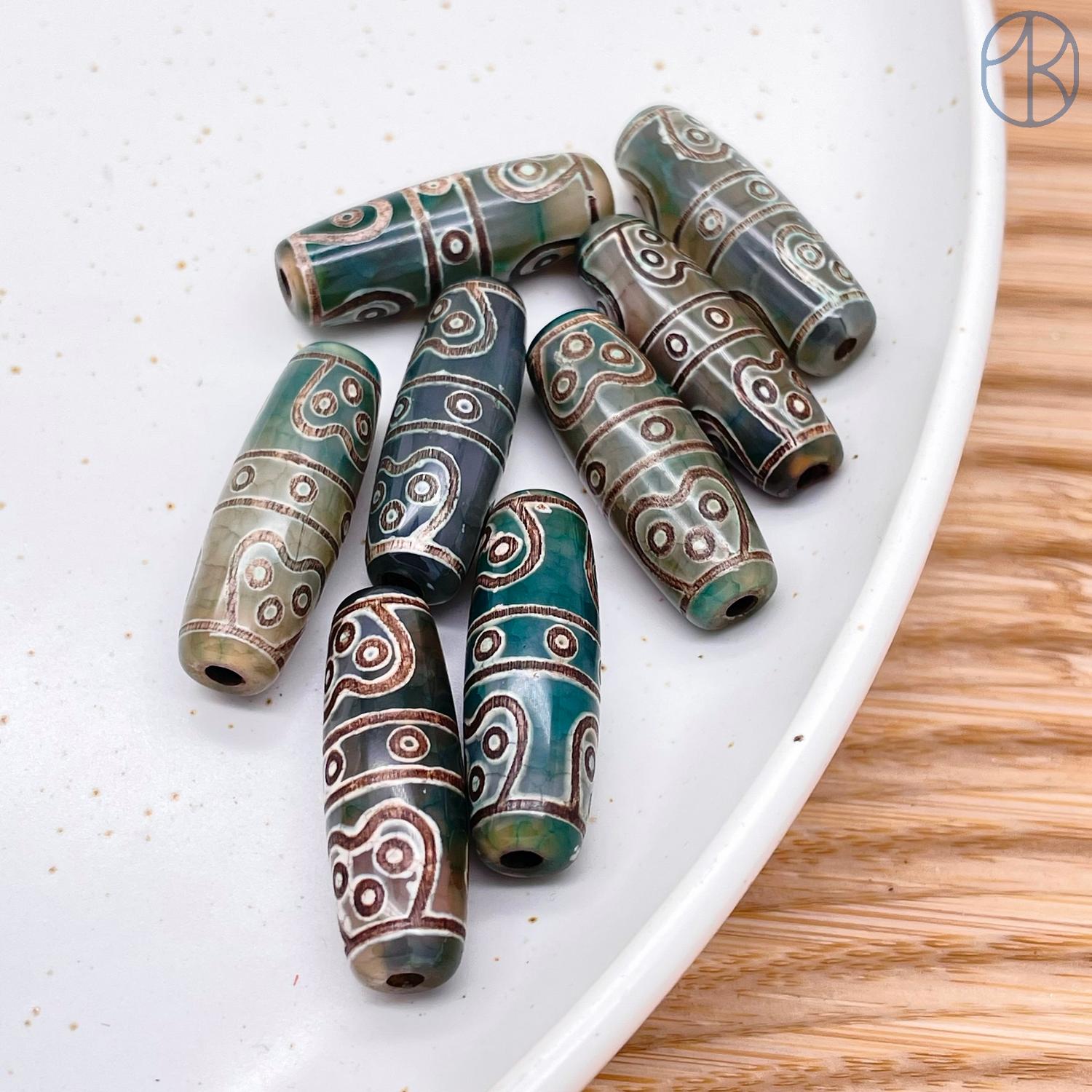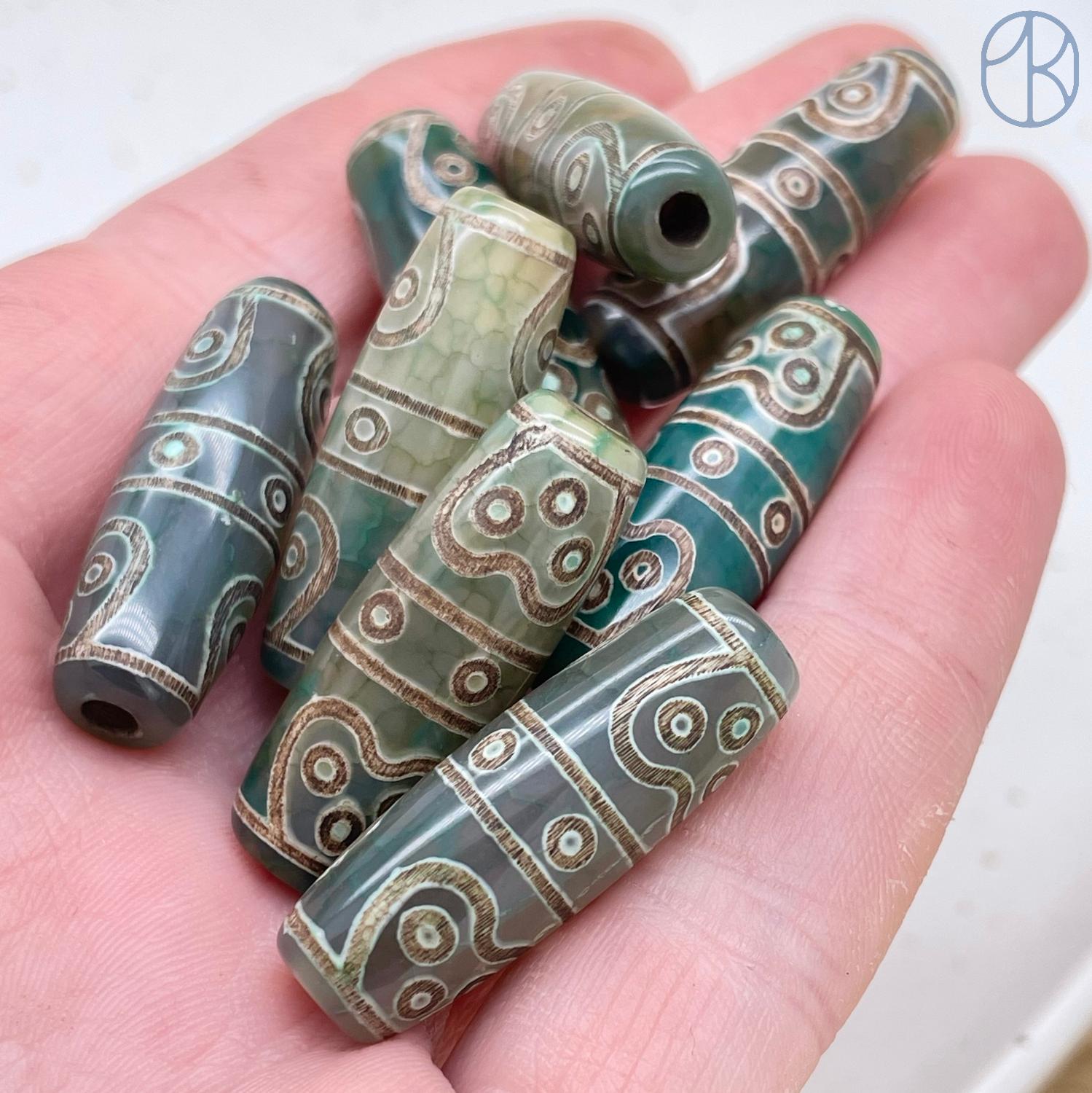 Бусина Дзи 17 глаз серо-зеленая бочонок 30*11 мм