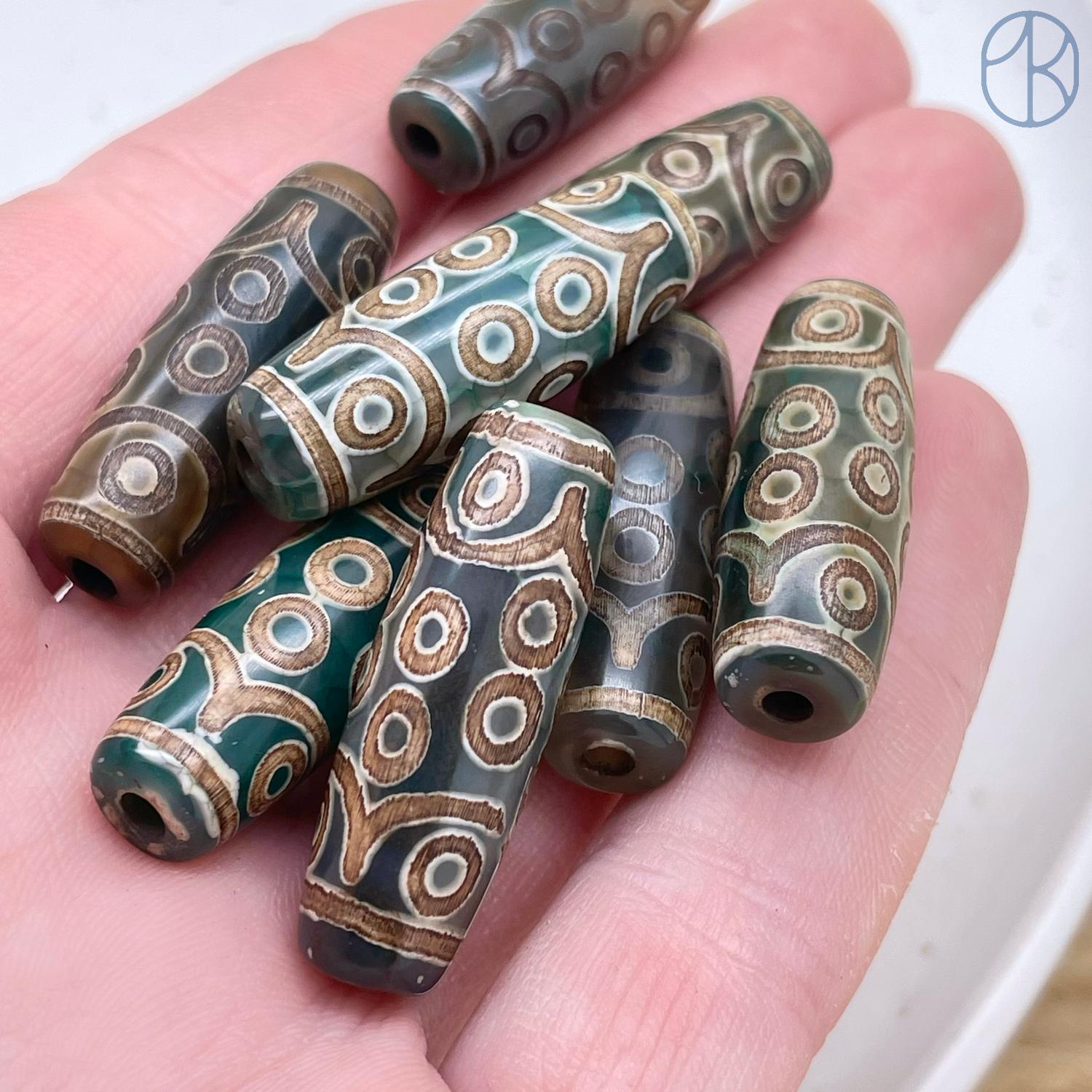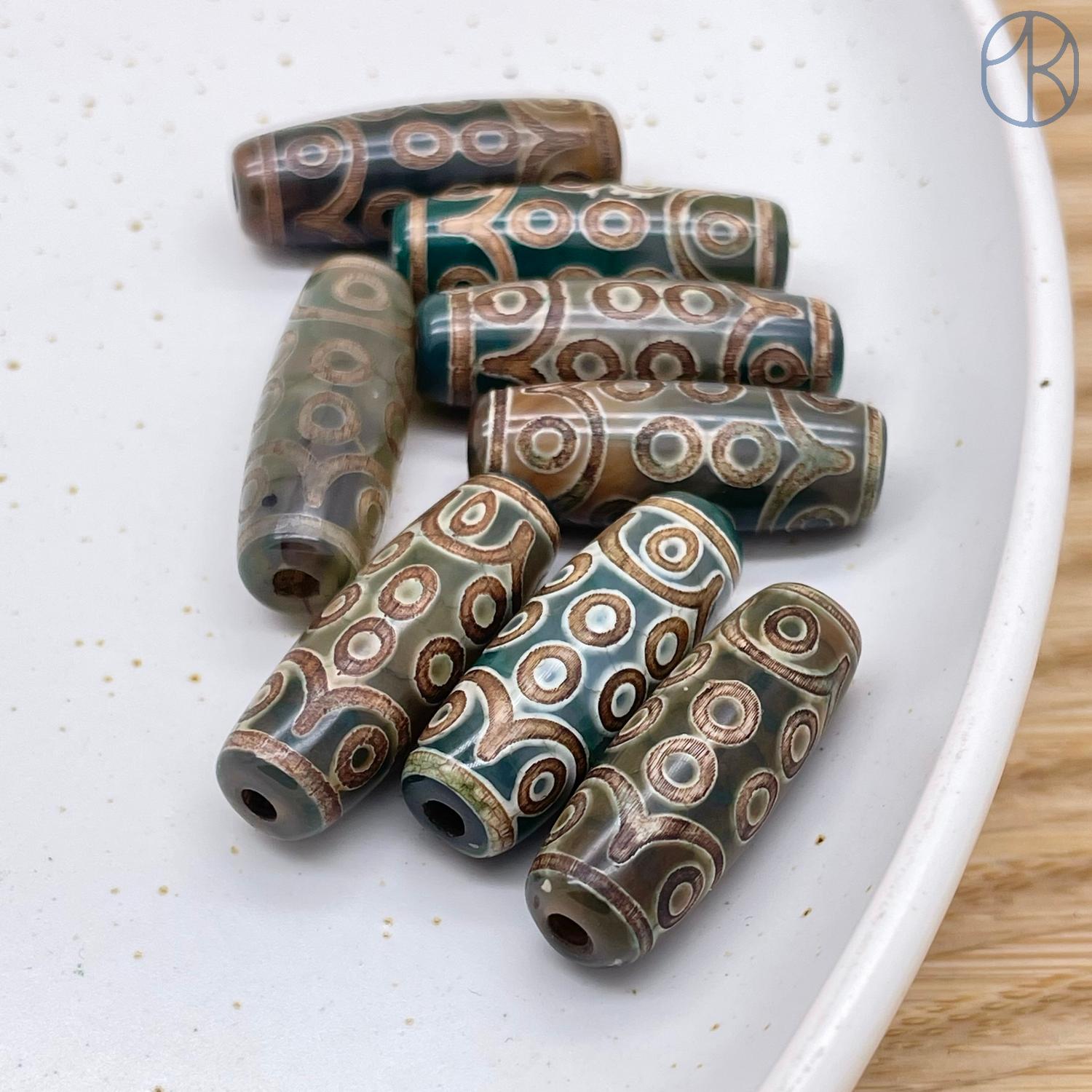 Бусина Дзи 18 глаз серо-зеленый бочонок 30*11 мм