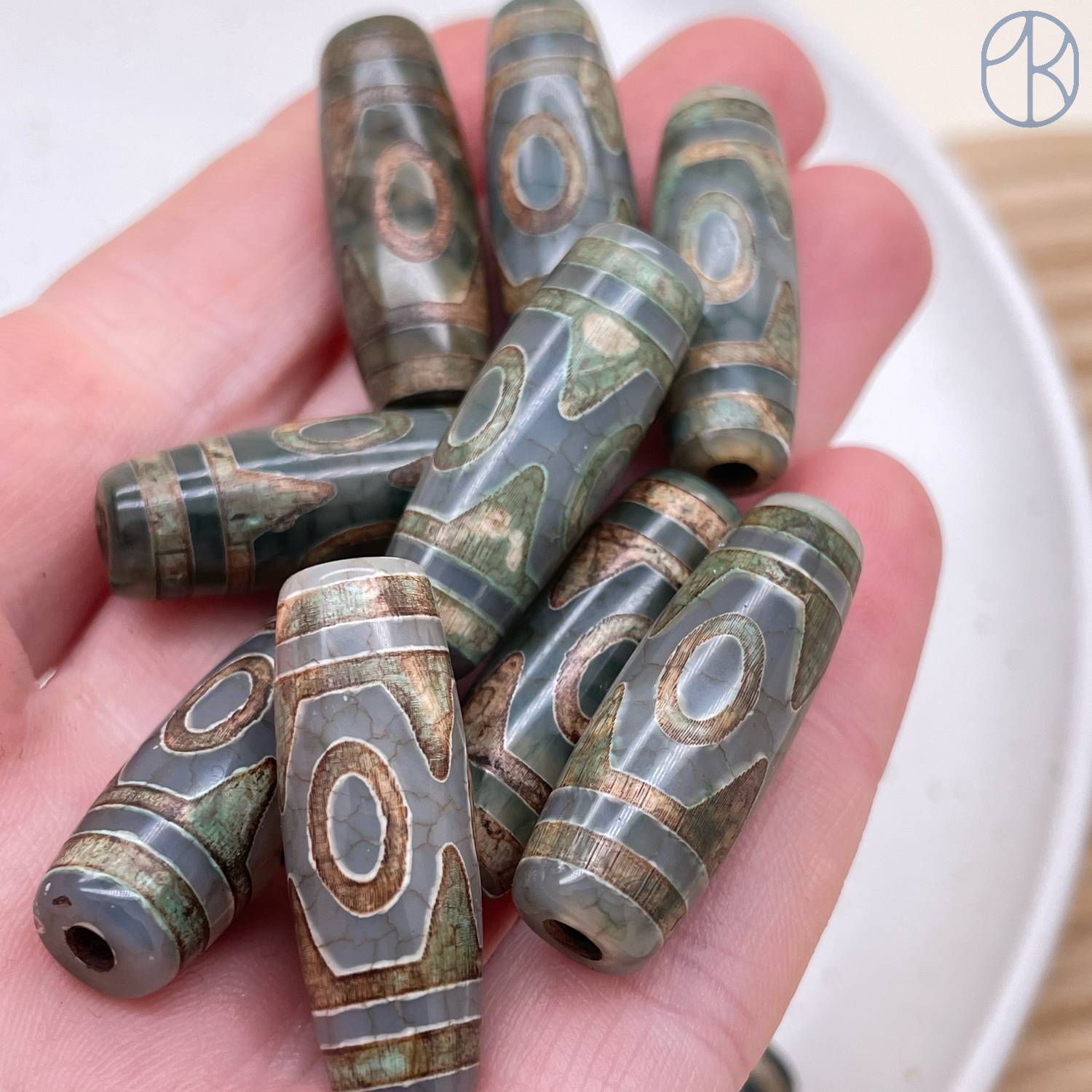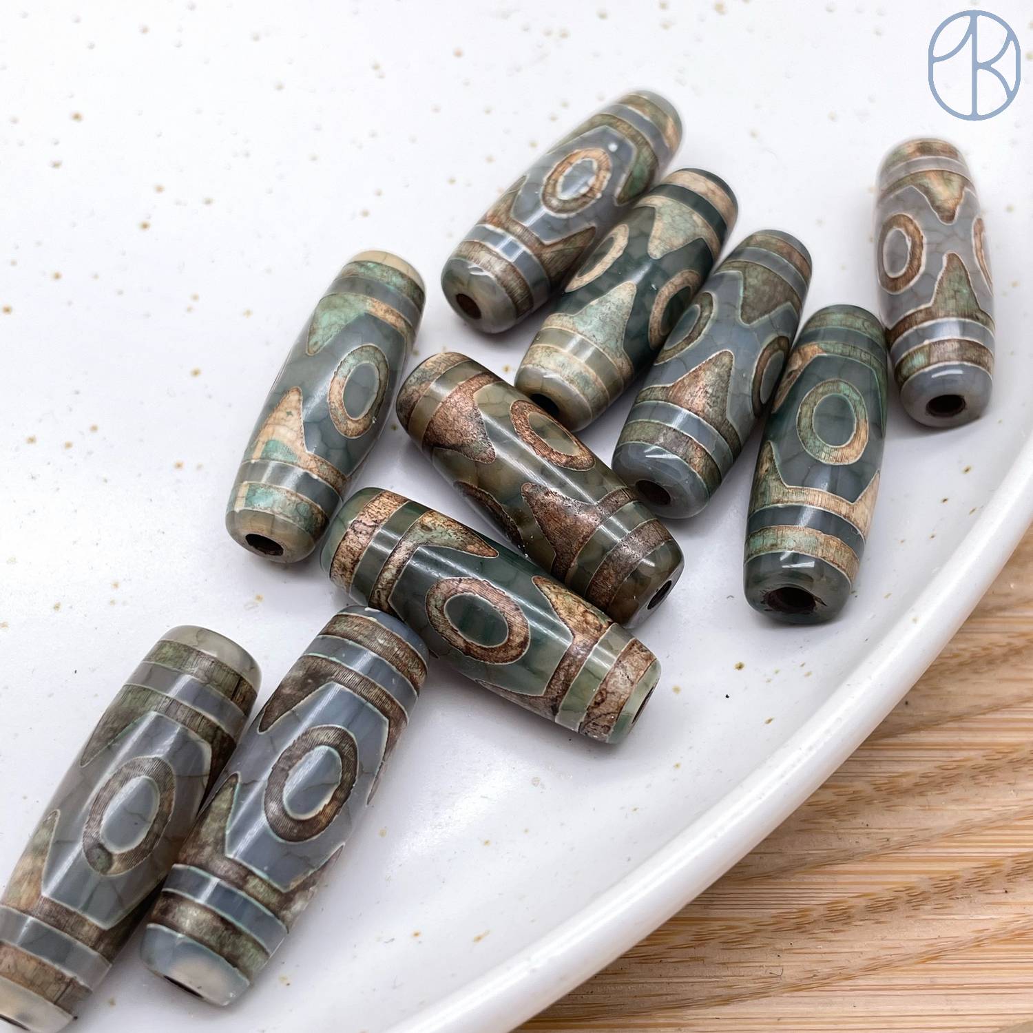 Бусина Дзи 3 глаза серо-зеленый бочонок №1 30х11 мм