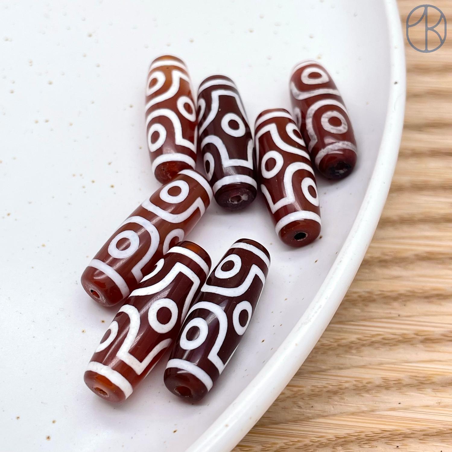 Бусина Дзи 6 глаз бело-коричневый бочонок 30*10 мм