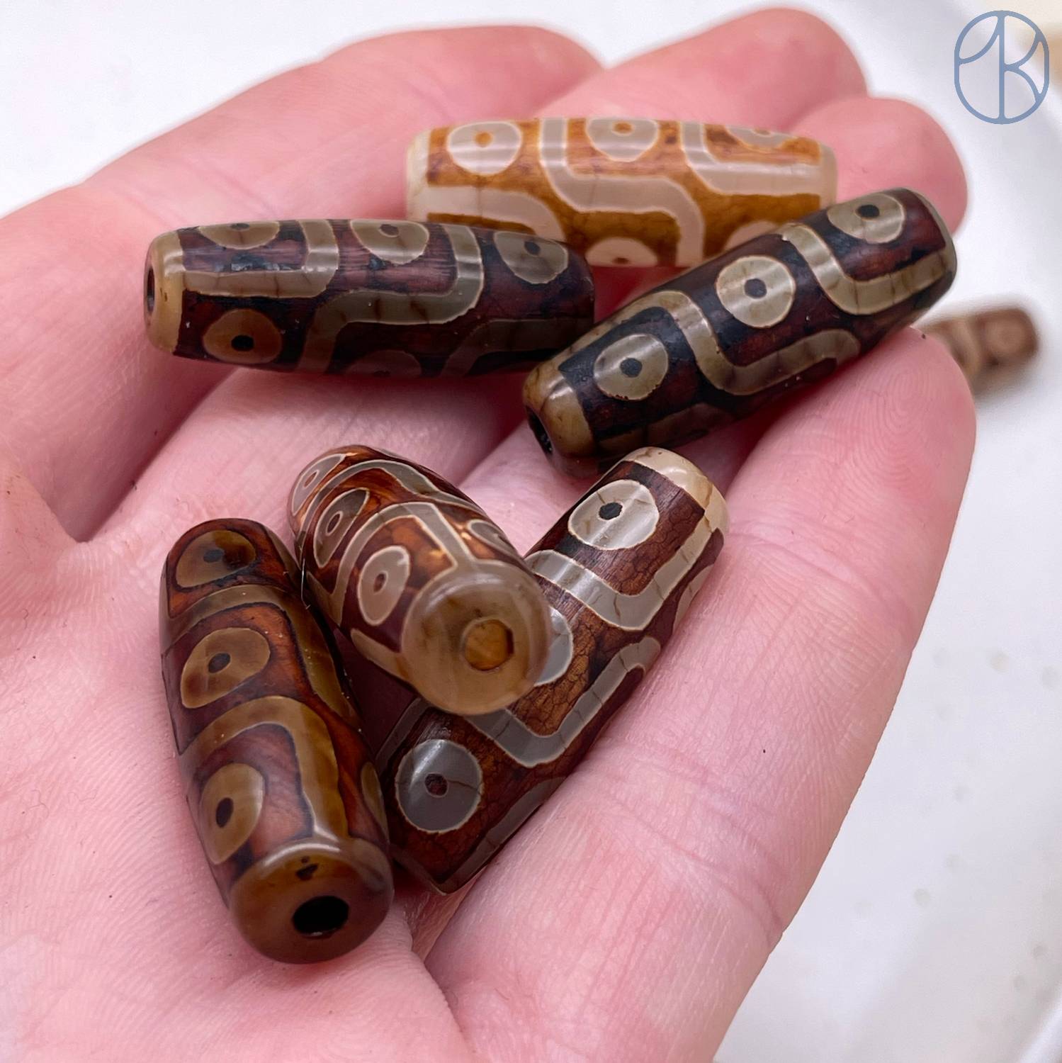 Бусина Дзи 9 глаз серо-коричневый бочонок 30х11 мм