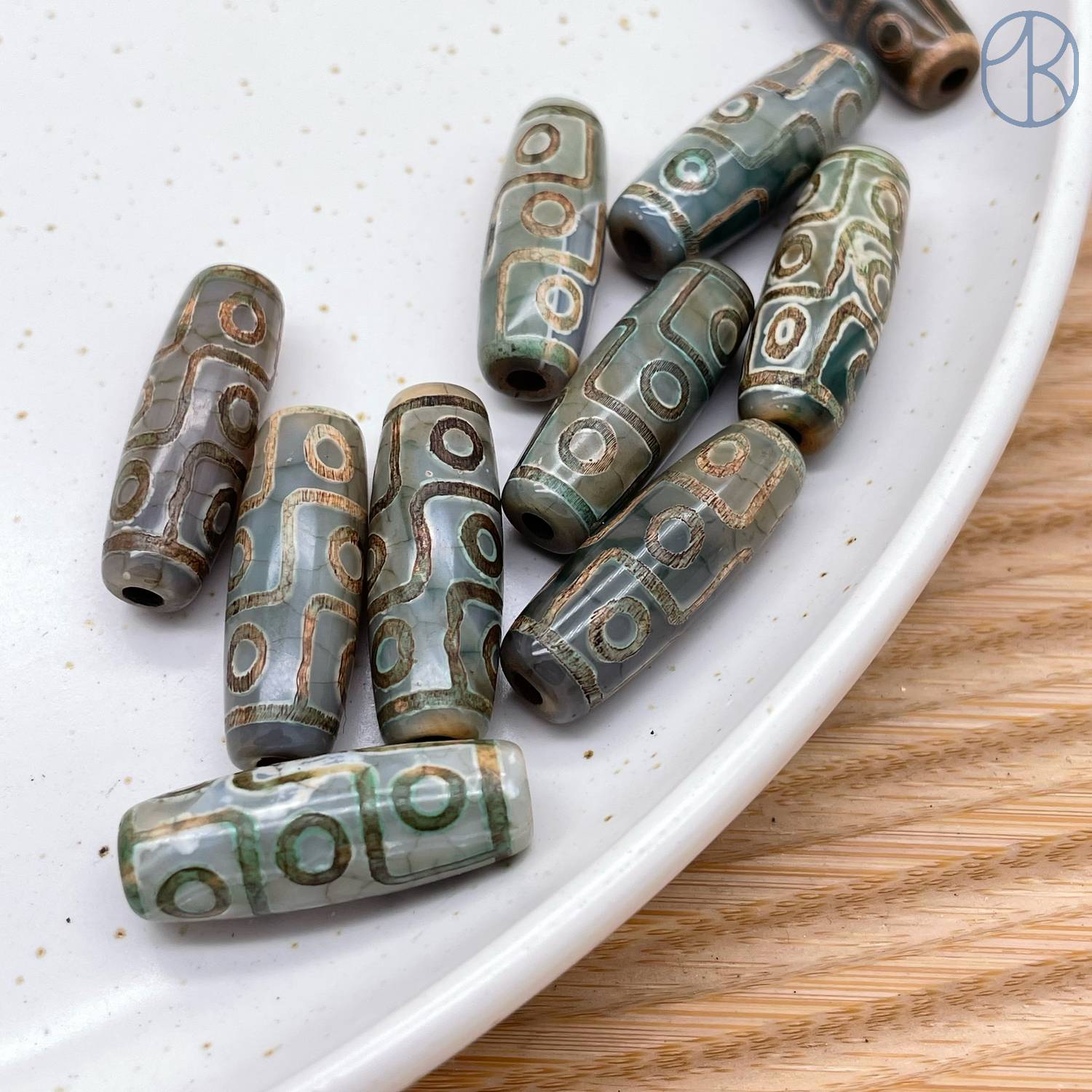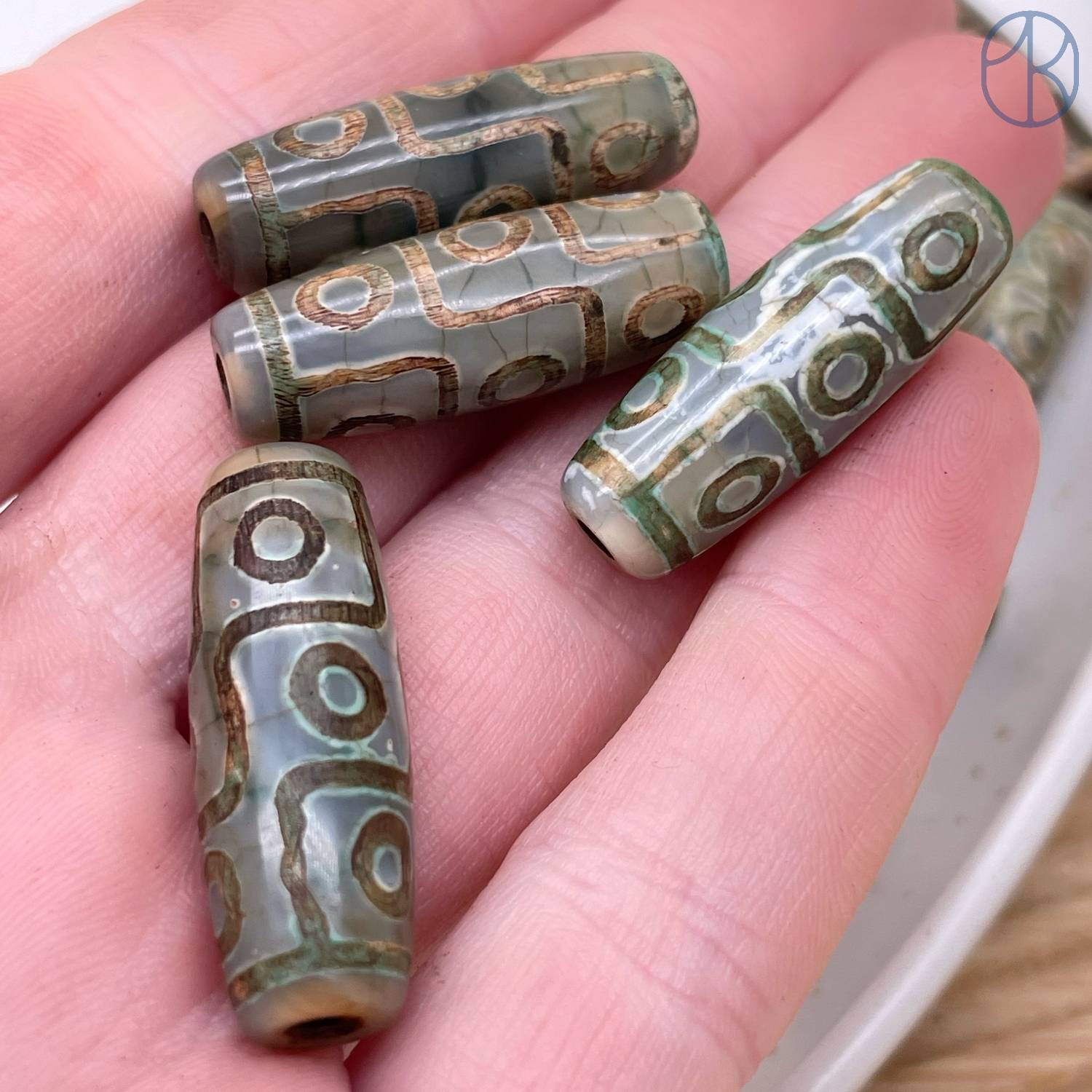 Бусина Дзи 9 глаз серо-зеленый бочонок 30х11 мм