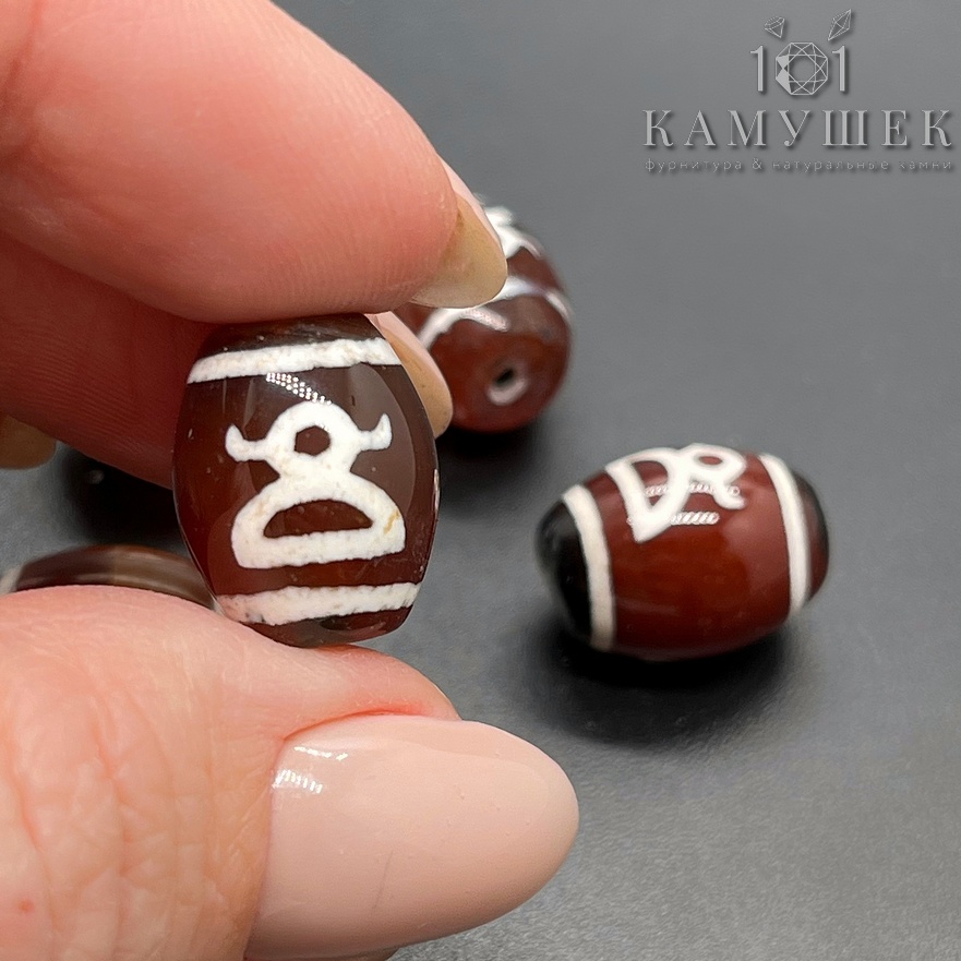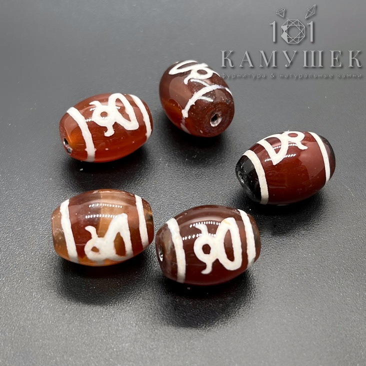 Бусина Дзи Кубера коричево-белый бочонок уп.5 шт 10х14 мм