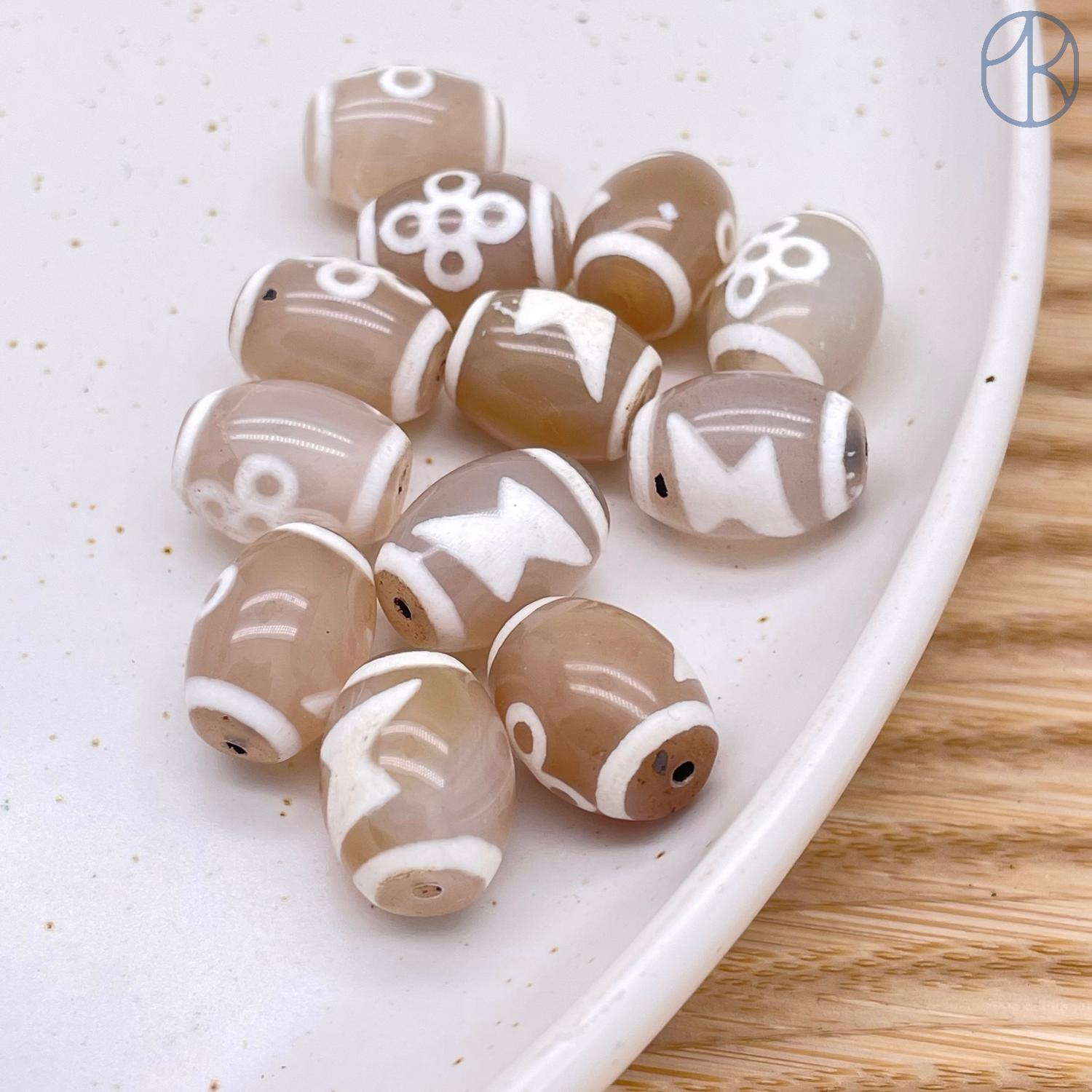 Бусина Дзи Гаруда и Молния серо-белый бочонок уп. 5шт 16х12 мм