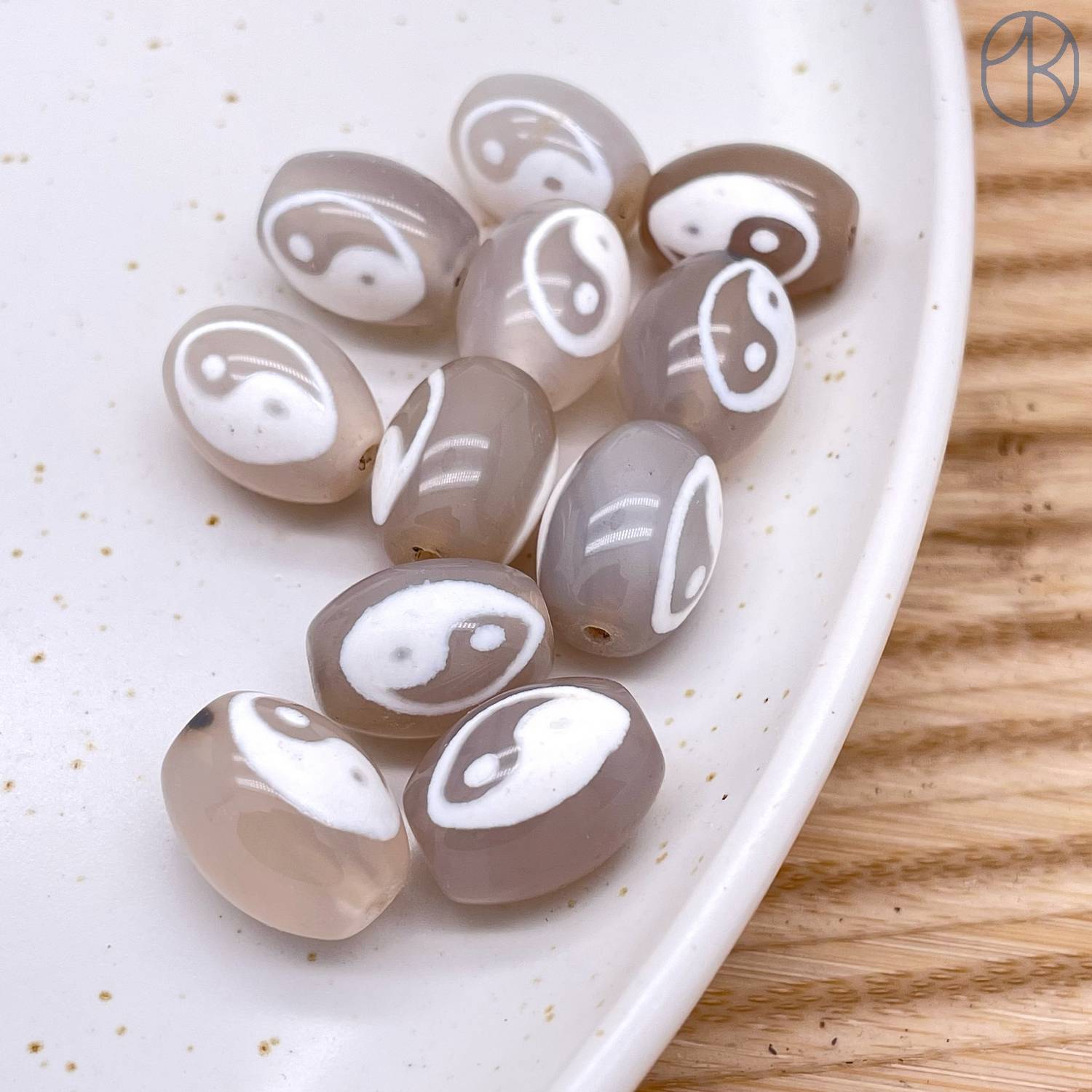 Бусина Дзи Инь-Янь серо-белый бочонок уп. 5шт 15х12 мм