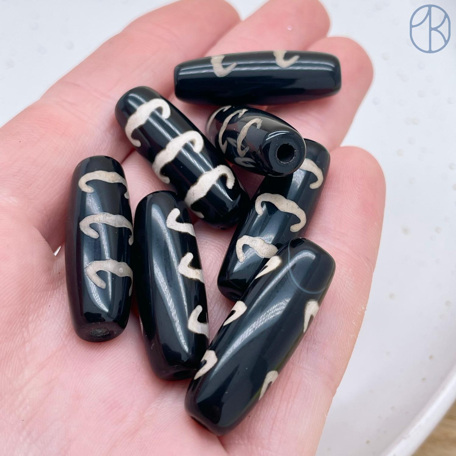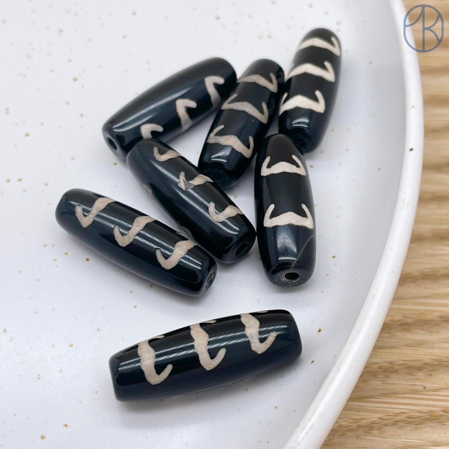 Бусина Дзи 5 Летучих мышей черно-белый бочонок 30х11 мм