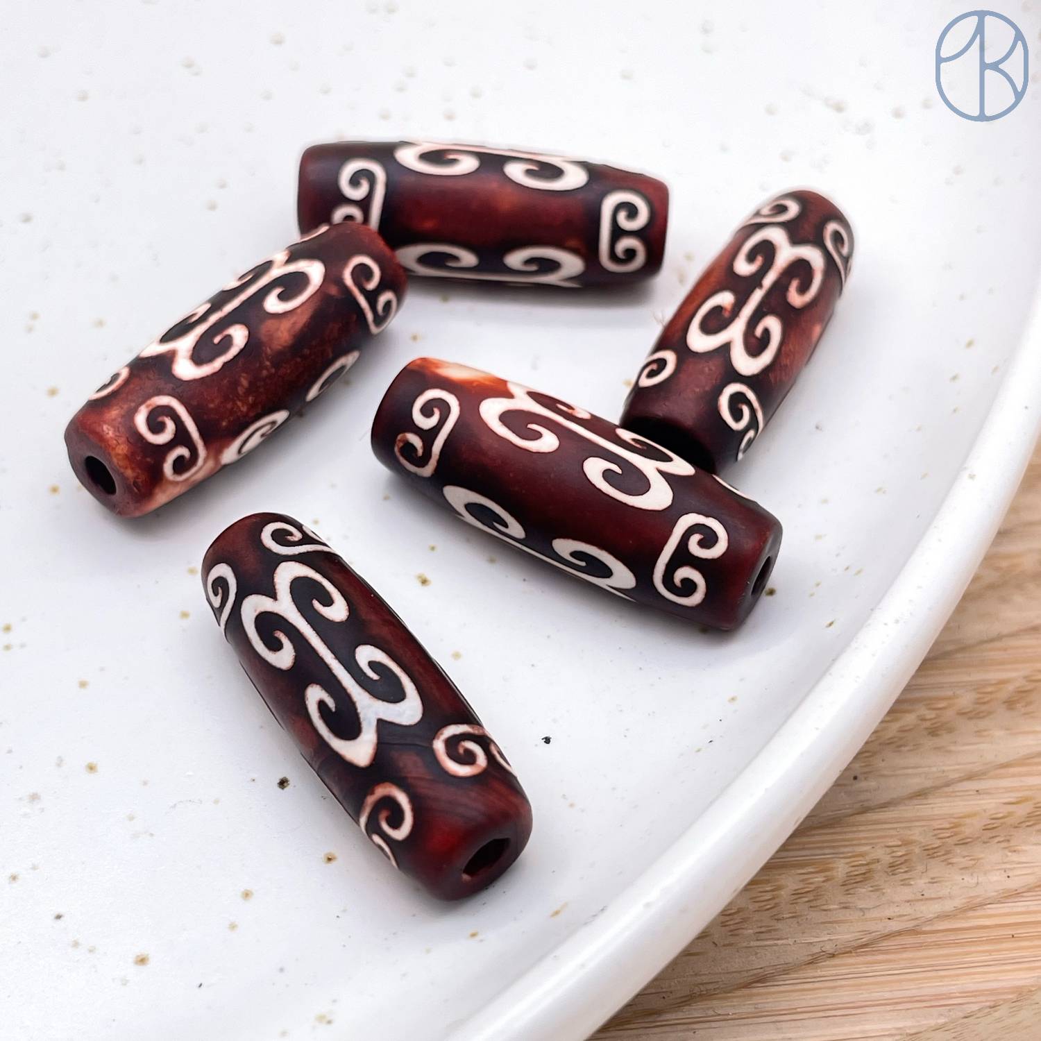 Бусина Дзи Вены Дракона коричневый бочонок 30х11 мм