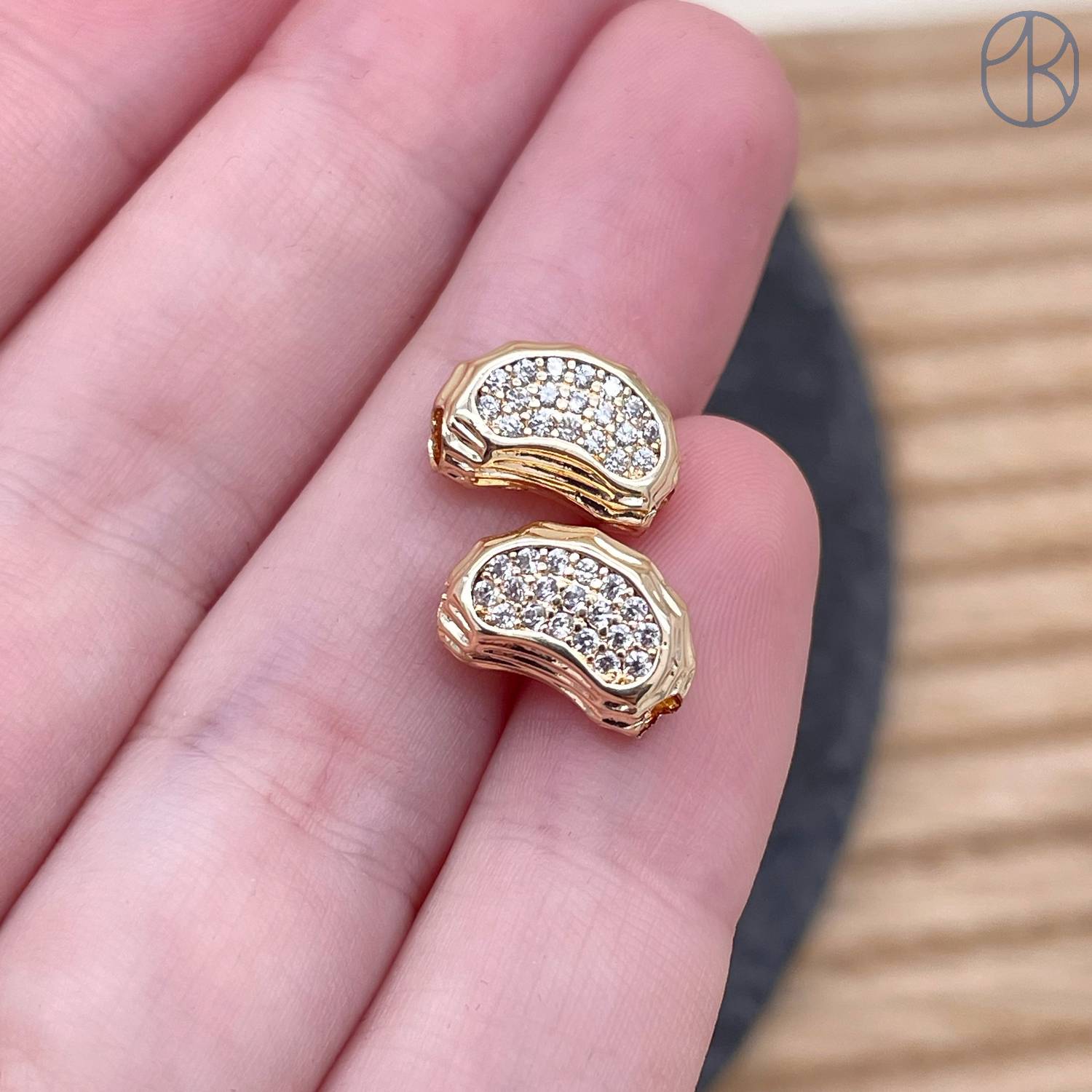 Бусина фриформ цирконы, цвет золото 11х7 мм