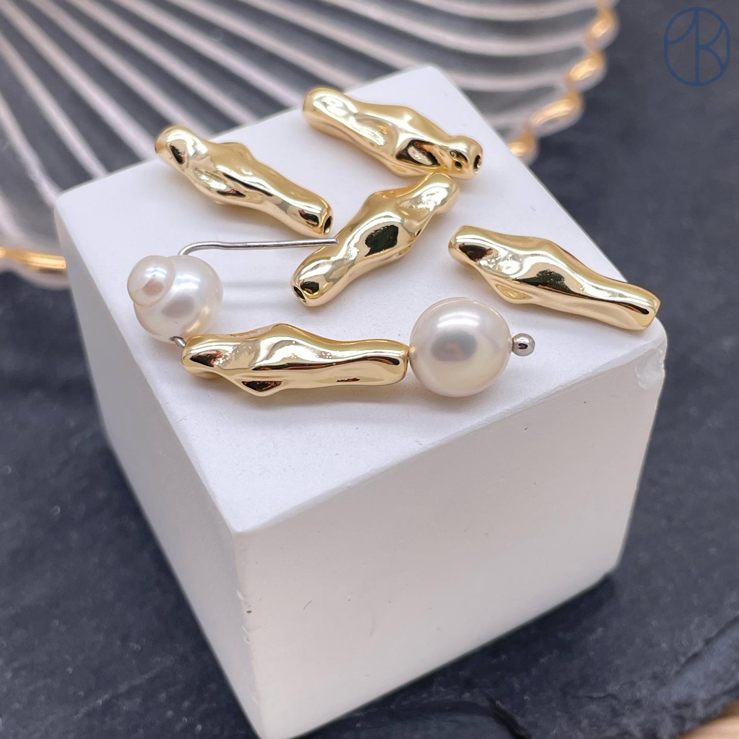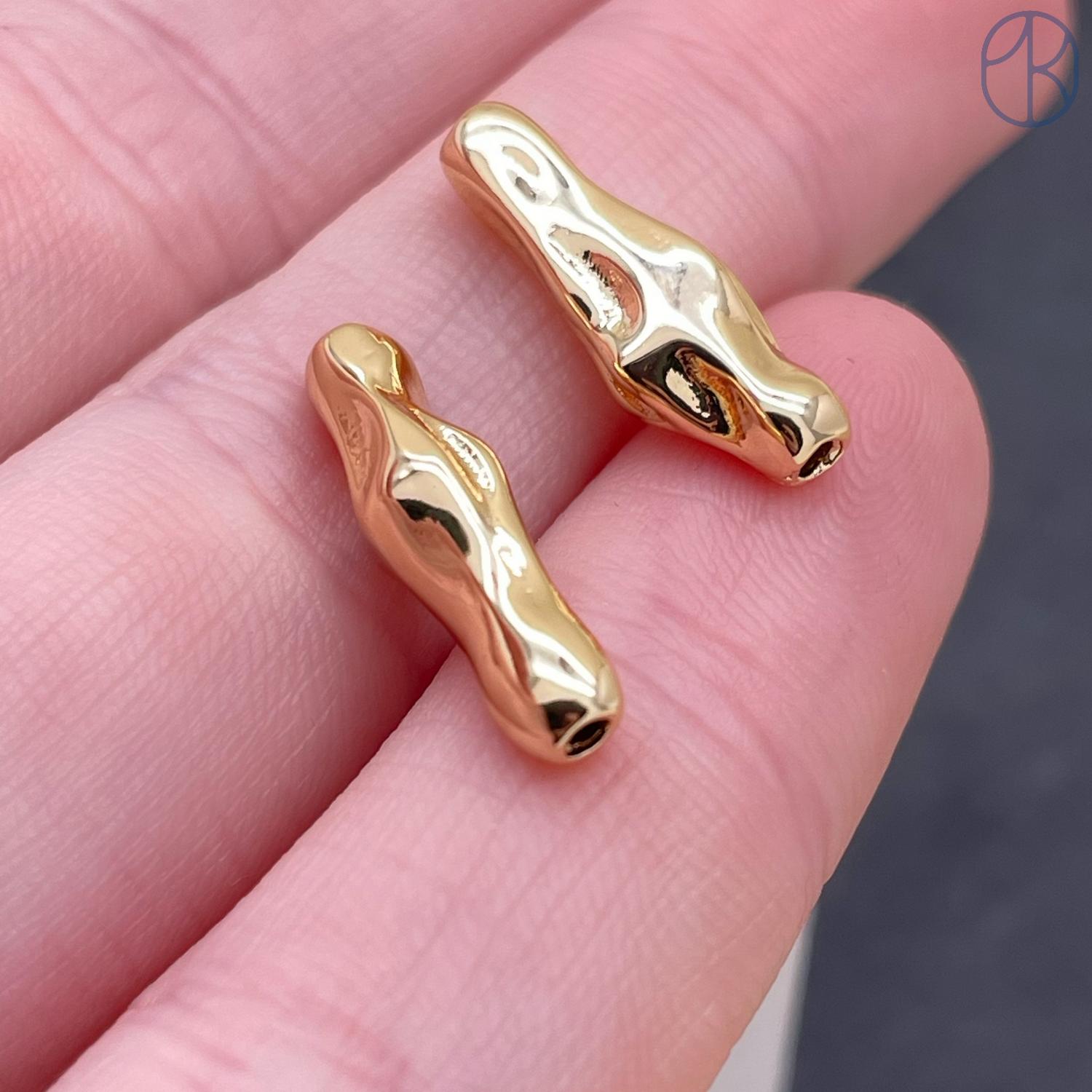 Бусина трубочка фриформ, цвет золото 28х8 мм