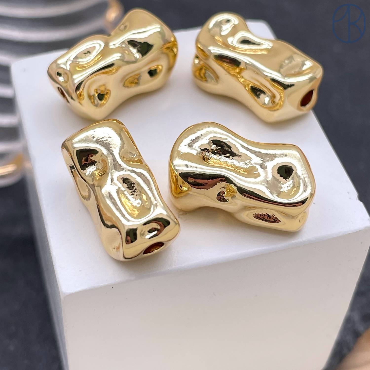 Бусина фриформ, цвет золото 9х18 мм