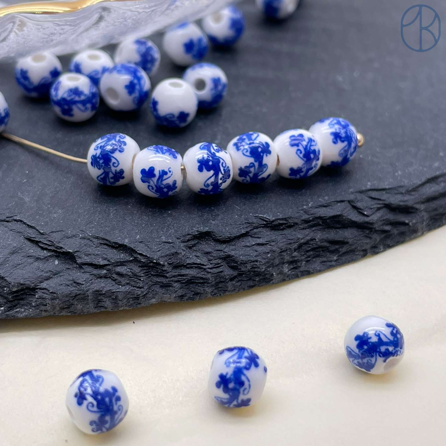 Бусина керамика узор гжель 6 мм
