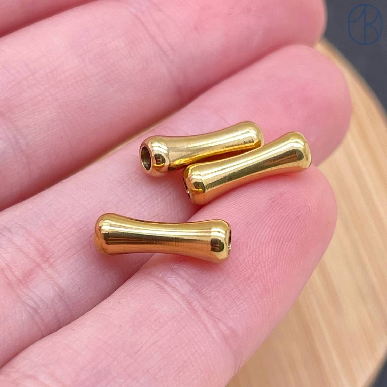 Бусина косточка сталь 12х4 мм, цвет золото 18К