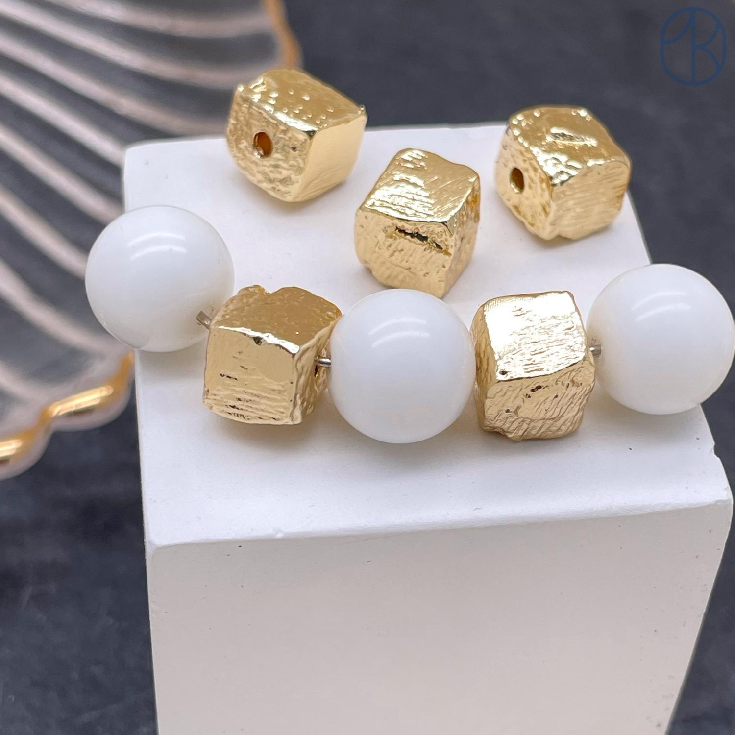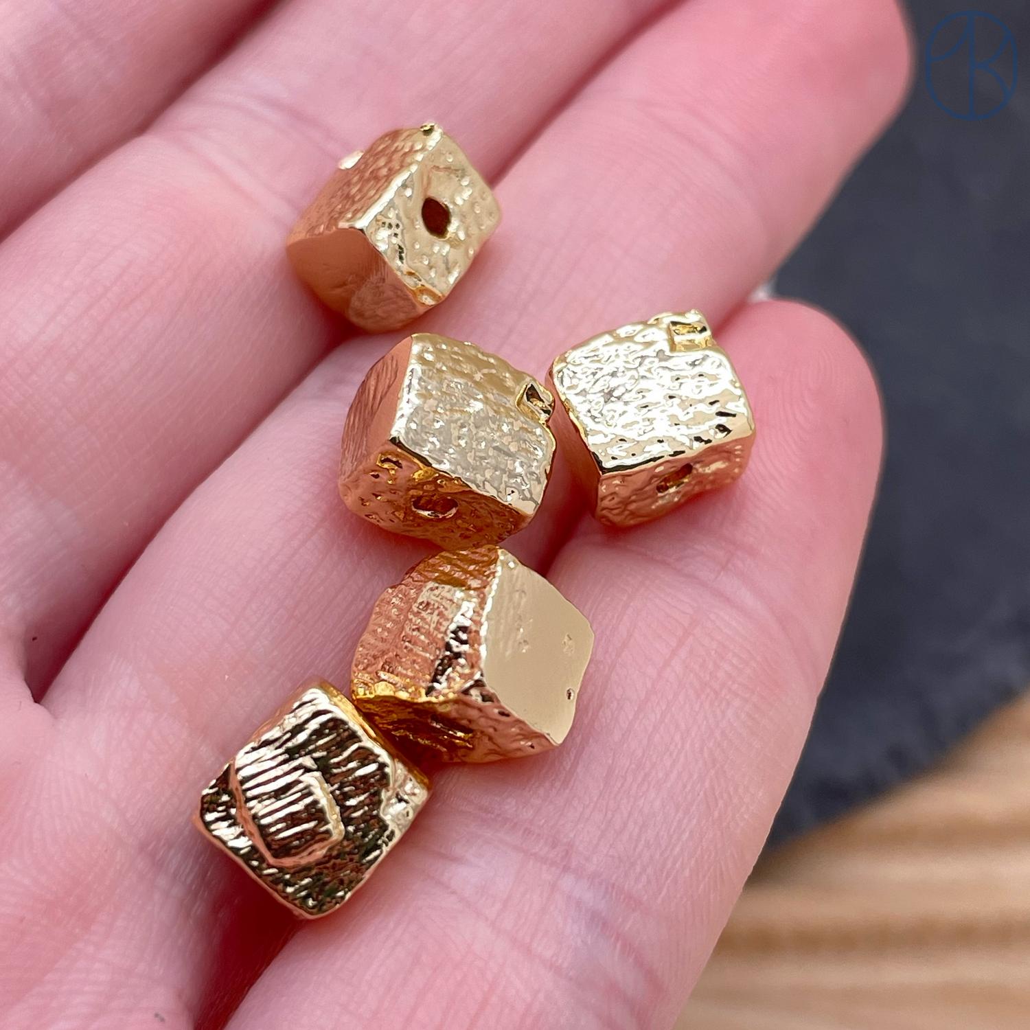 Бусина куб фриформ, цвет золото 8 мм