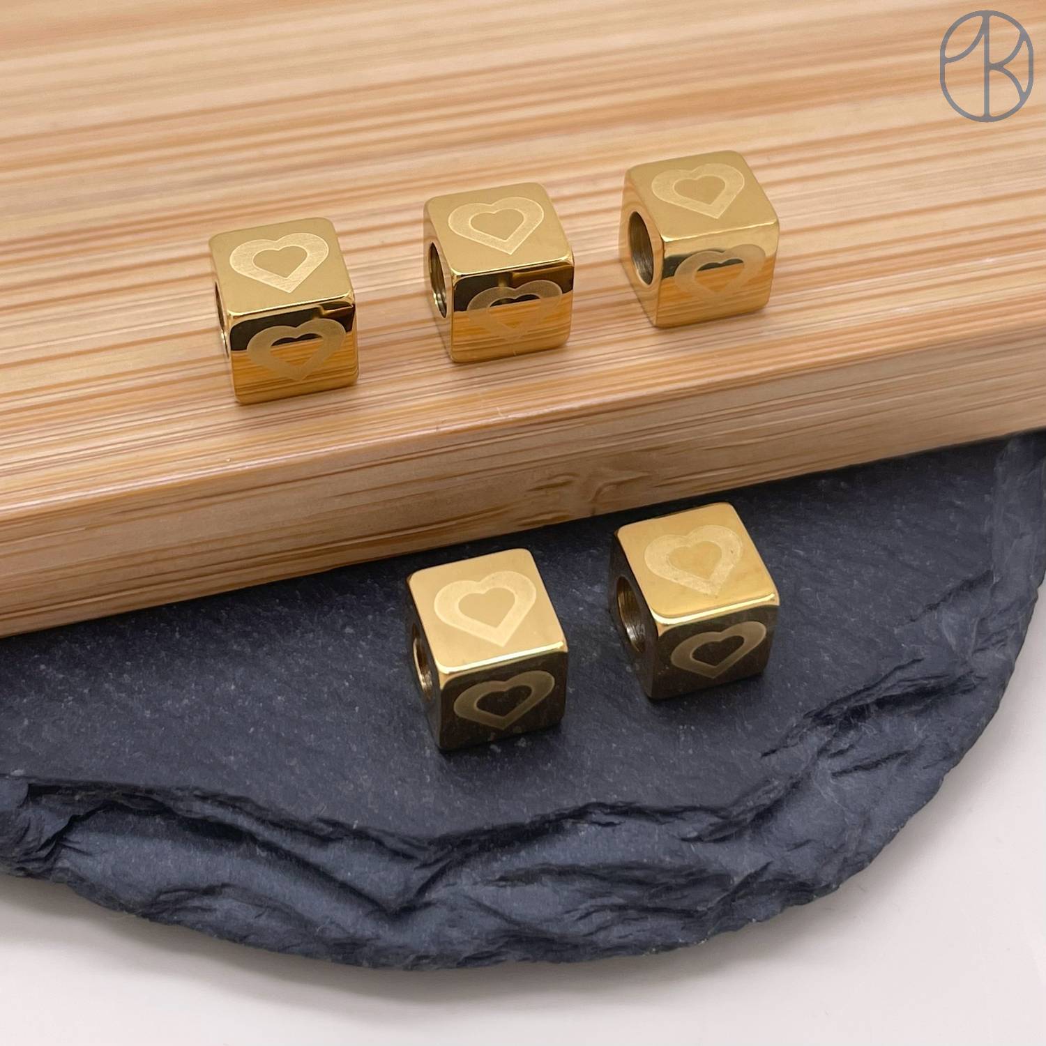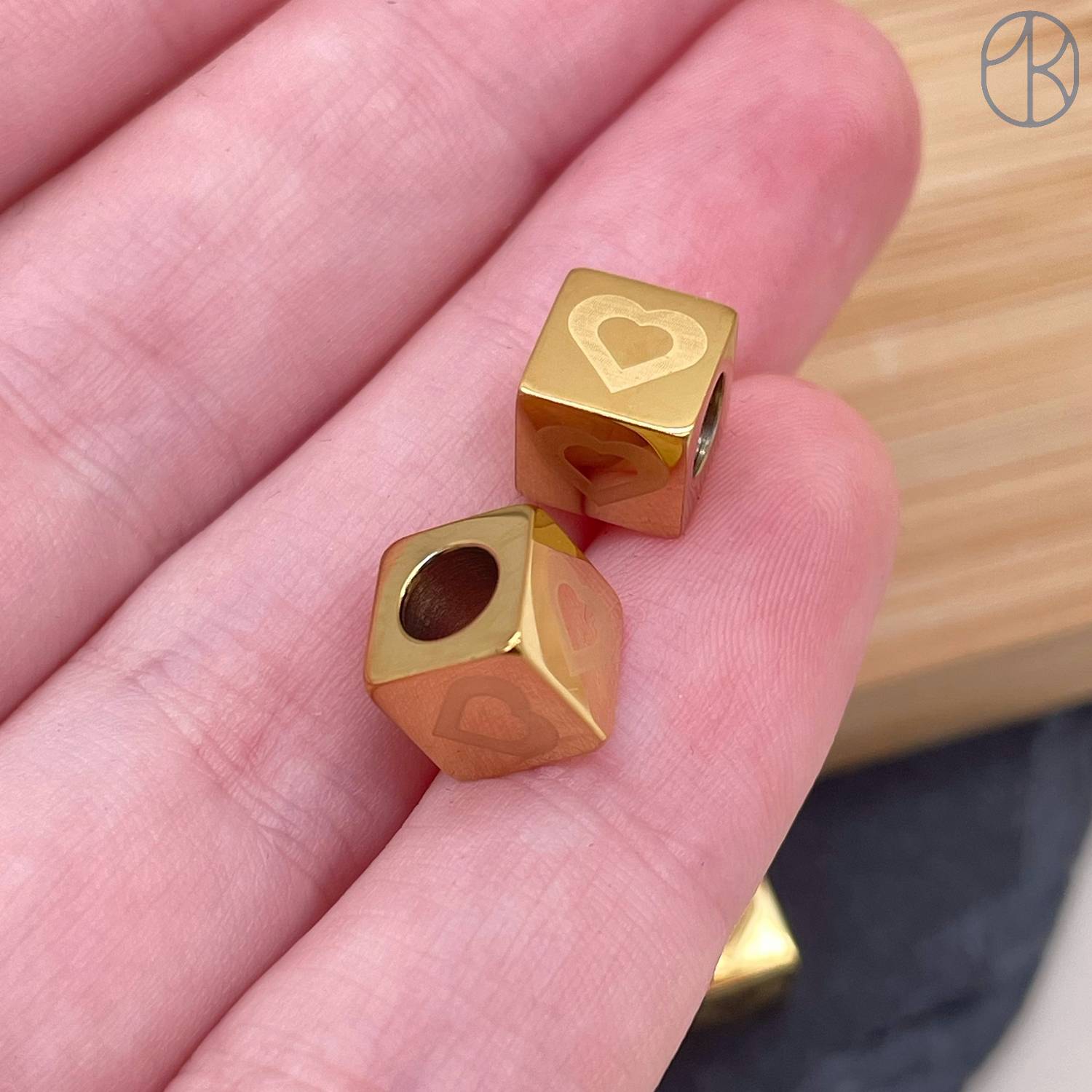 Бусина куб сердце сталь 7 мм, цвет золото 14К