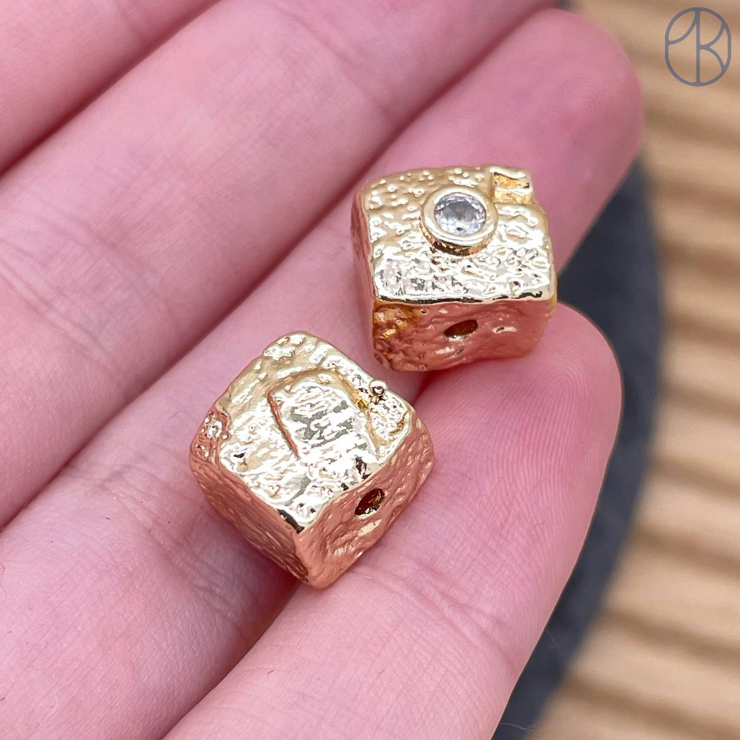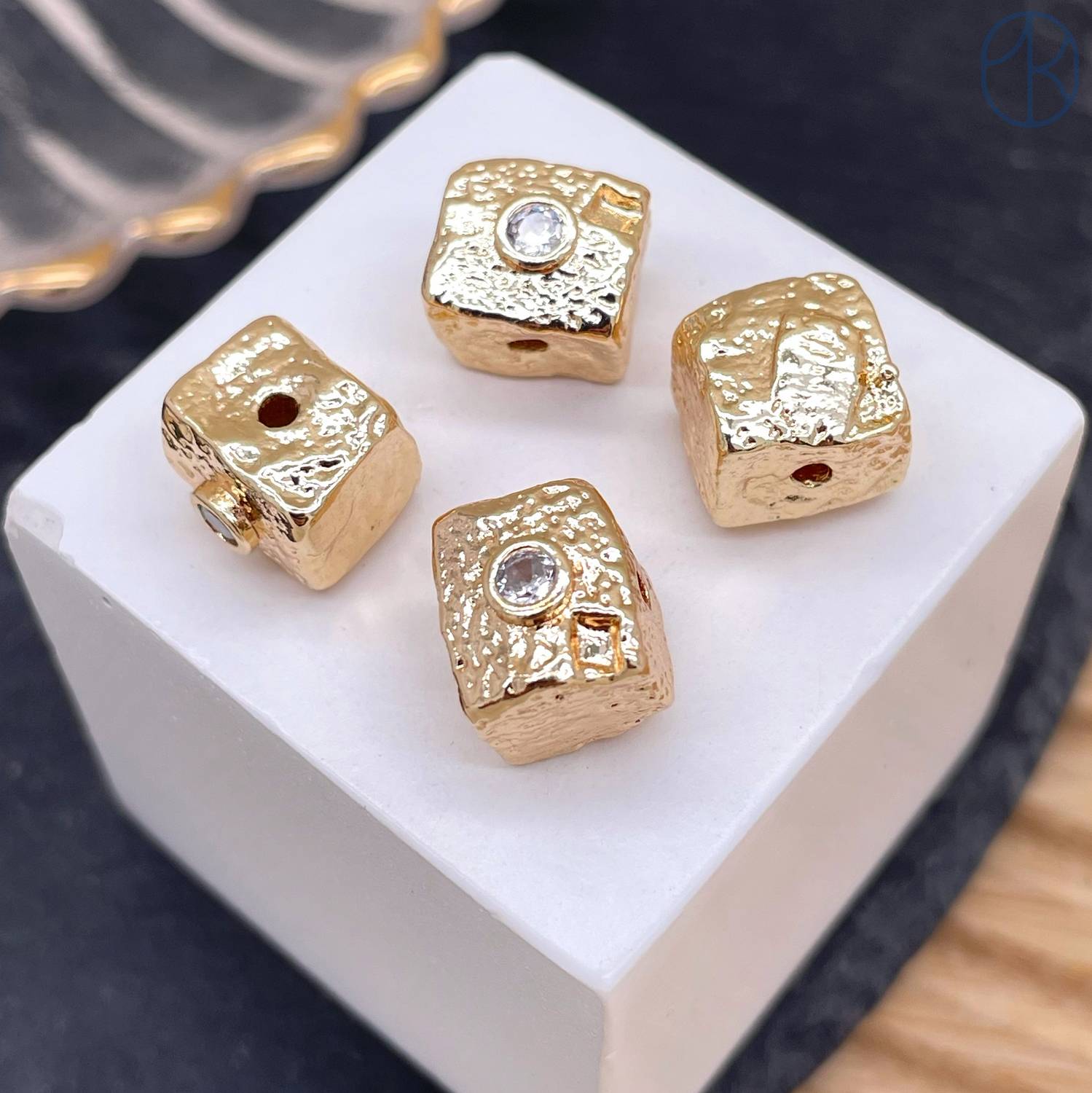Бусина куб циркон фриформ, цвет золото 10 мм